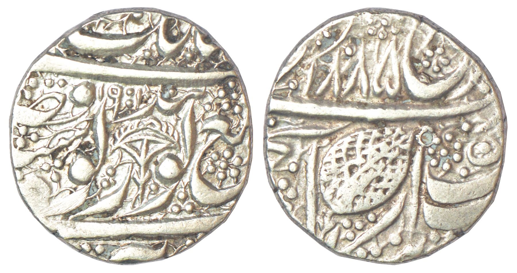 Sikh Empire, silver rupee, Amritsar mint, 'Nanak Shahi' couplet, VS 1885/1901, Royal Chhatra symbol within Gur Gobind on reverse, G. Singh 01.62.01, 11.02g.