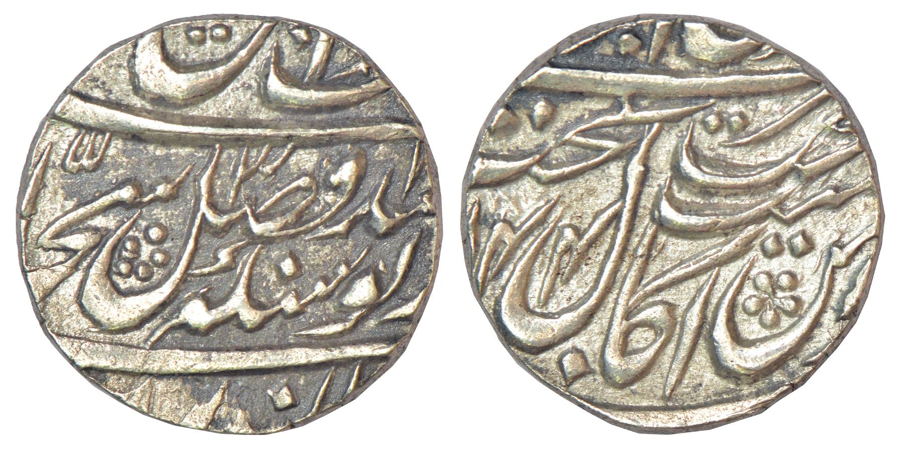 Sikh Empire, silver rupee, Sri Amritsar Jiyo mint, 'Nanak Shahi' couplet, VS (1)844, G. Singh 01.10.03, 11.26g, Guru Nanak Era 31X in small numerals on obverse.