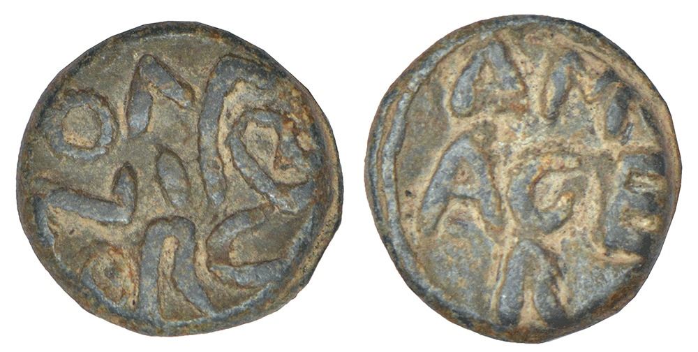 Indo-Danish, Christian IV (1620-1648 AD), lead cash, ND, KM 12, 4.10g. Obv: legend DA/NISB/ORG. Rev: legend AM/AGE/R in three lines.