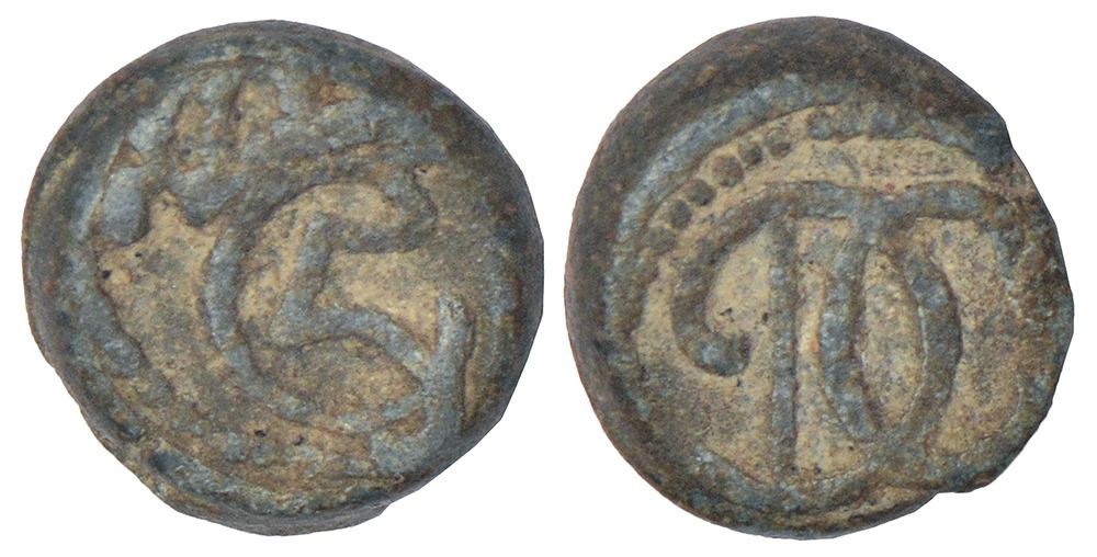 Indo-Danish, Christian V (1670-1699 AD), lead cash, ND, KM 92, 2.93g. Obv: Crowned C5 monogram. Rev: Crowned DOC.
