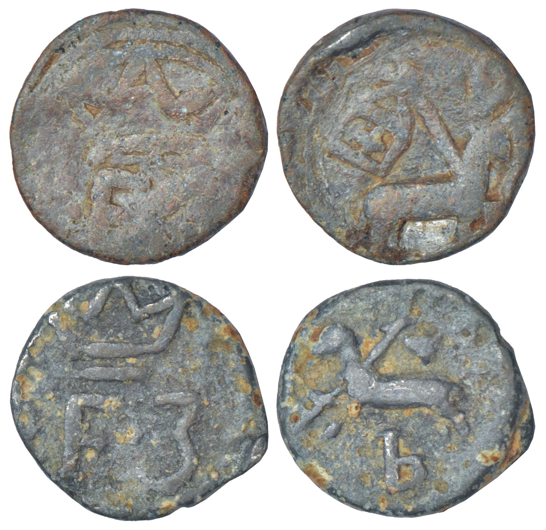Indo-Danish, Frederik III (1648-1670 AD), lead cash (2), ND (A) Obv: Crowned F3 monogram. Rev: Lamb facing right, KM 72, 2.28g and (B) Obv: Crowned F3 monogram. Rev: Lamb facing to left below letter 'B', KM 73, 2.43g.
