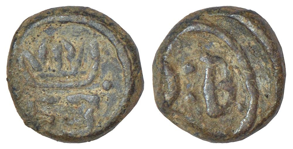 Indo-Danish, Frederik III (1648-1670 AD), lead cash, ND, KM 53, 3.73g. Obv: Crowned F3 monogram. Rev: legend DB.