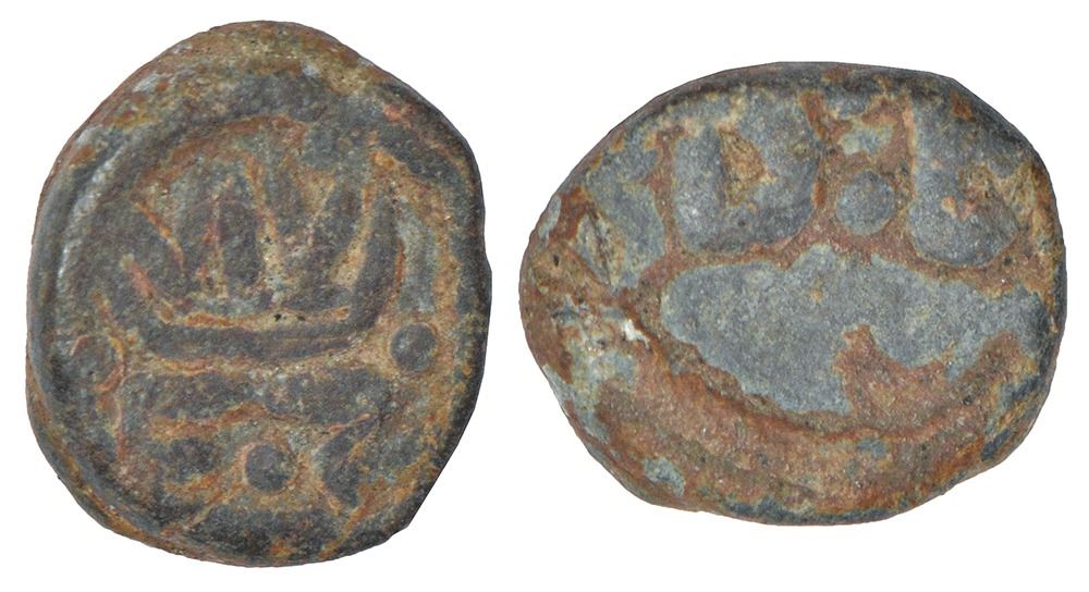Indo-Danish, Frederik III (1648-1670 AD), lead cash, ND, KM 53, 3.82g. Obv: Crowned F3 monogram. Rev: legend DB.