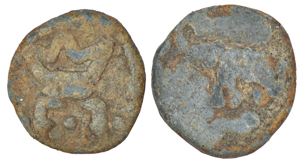 Indo-Danish, Frederik III (1648-1670 AD), lead cash, ND, KM 79, 2.88g. Obv: Crowned F3 monogram. Rev: Elephant facing to left.