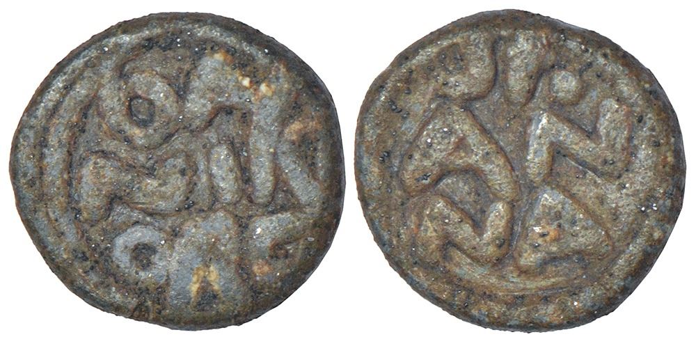 Indo-Danish, Tranquebar, lead cash, temp. Christian IV (1620-1648 AD), ND, KM-14, Jensen-9, 4.50g. Obv: legend DAN / NISB / ORG. Rev: legend St / AN / NA.