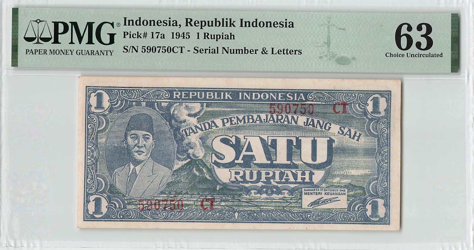 Indonesia 1 Rupiah 1945 Pick 17a PMG Choice Uncirculated 63