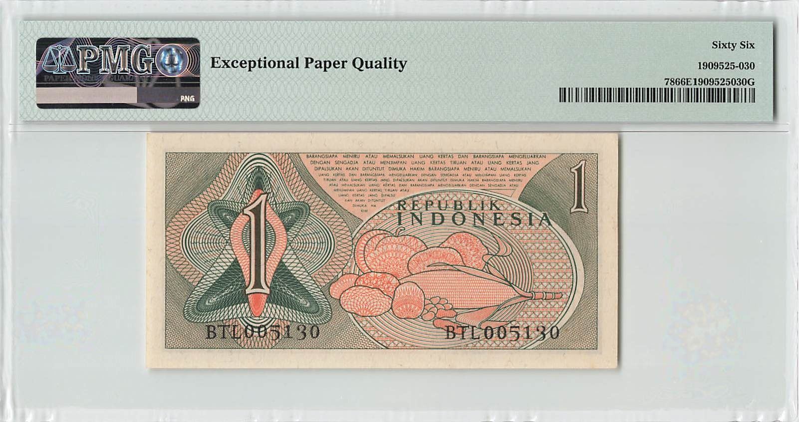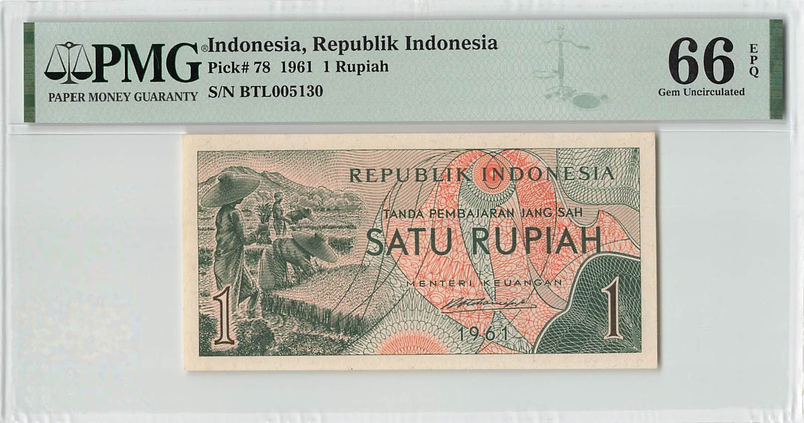 Indonesia 1 Rupiah 1961 Pick 78 PMG Gem Uncirculated 66 EPQ