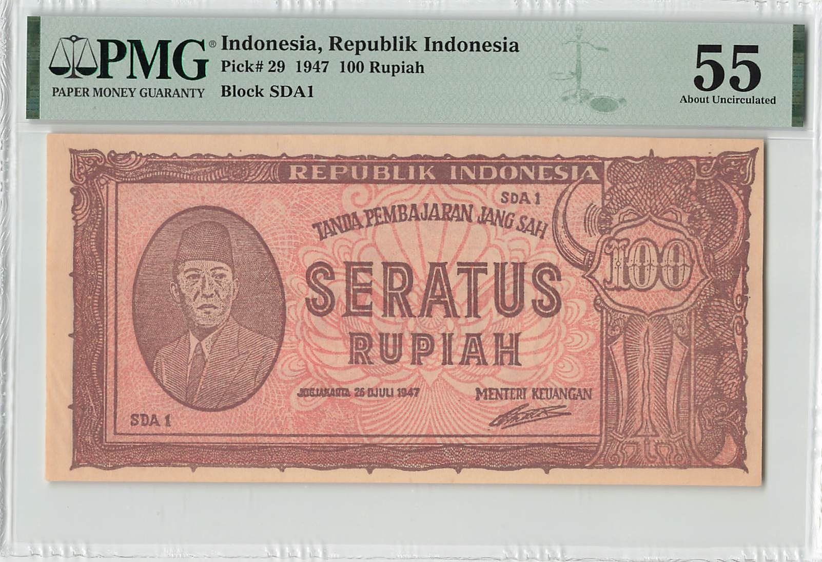 Indonesia 100 Rupiah 1947 Pick 29 PMG About Uncirculated 55