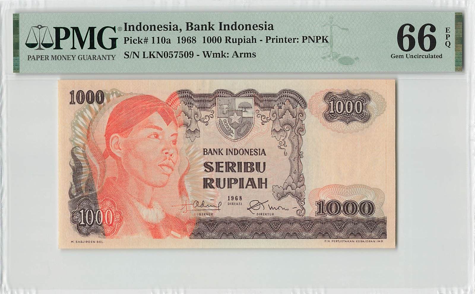 Indonesia 1000 Rupiah 1968 Pick 110a PMG Gem Uncirculated 66 EPQ