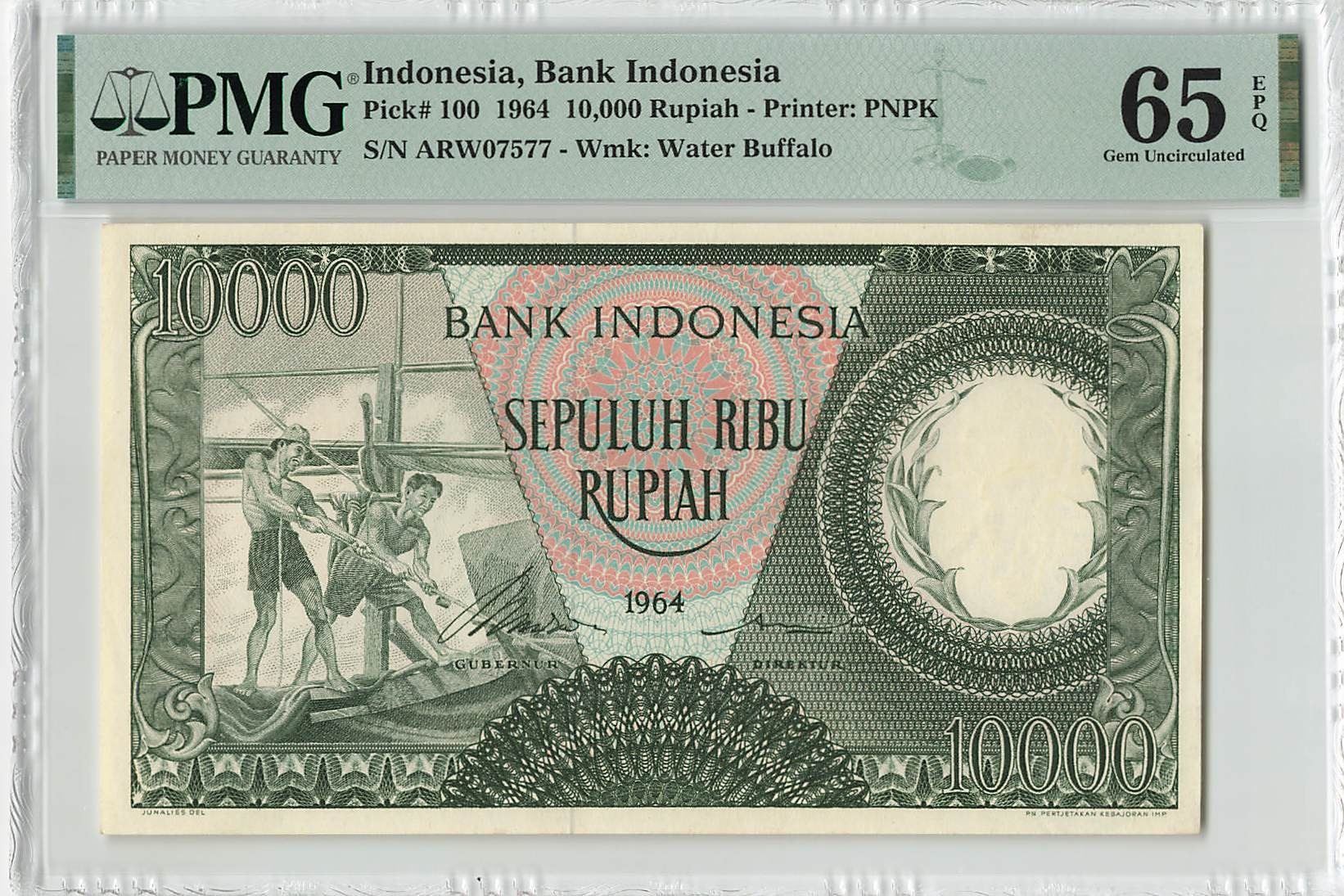 Indonesia 10000 Rupiah 1964 Pick 100 PMG Gem Uncirculated 65 EPQ