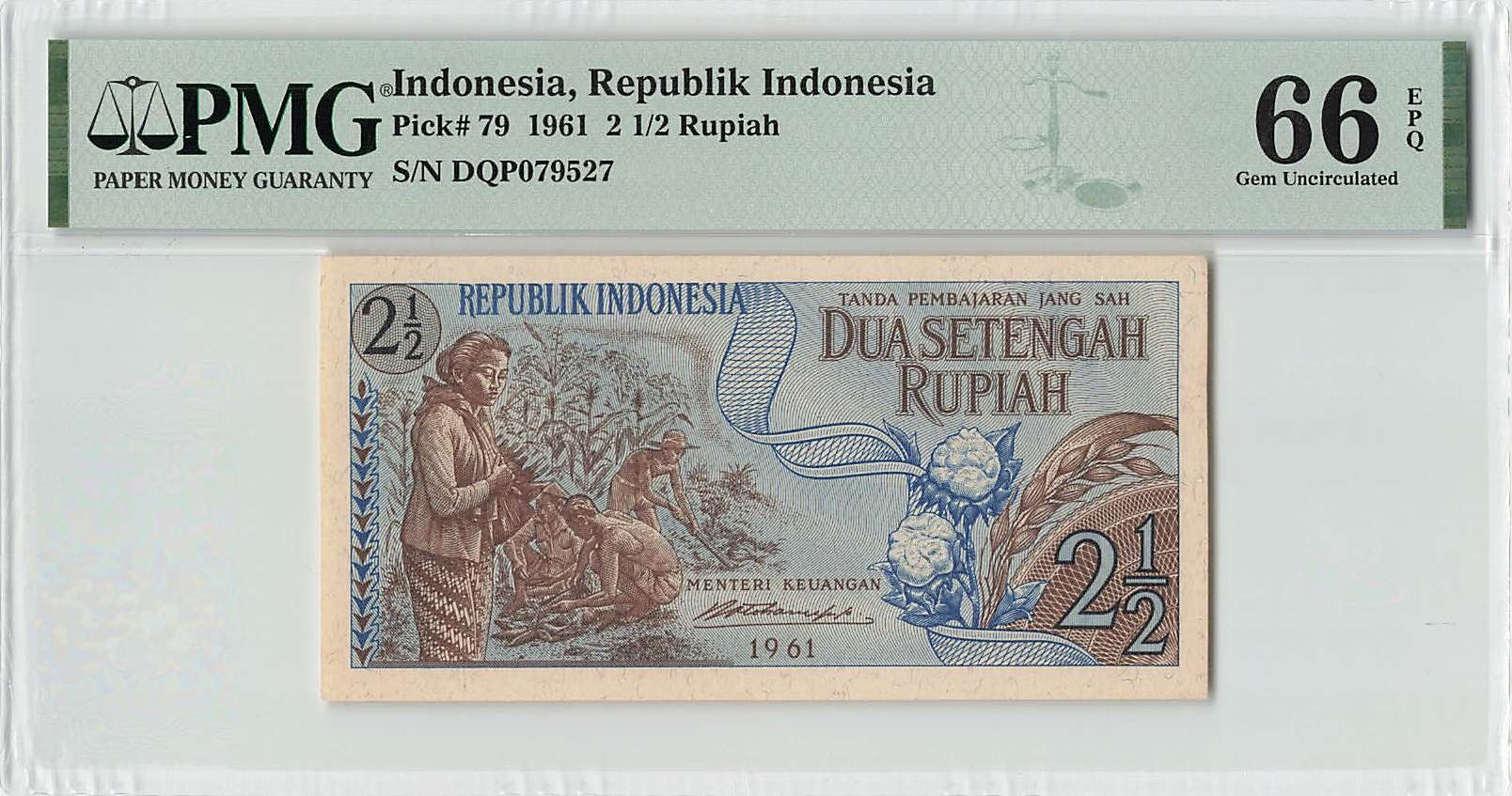 Indonesia 2½ Rupiah 1961 Pick 79 PMG Gem Uncirculated 66 EPQ