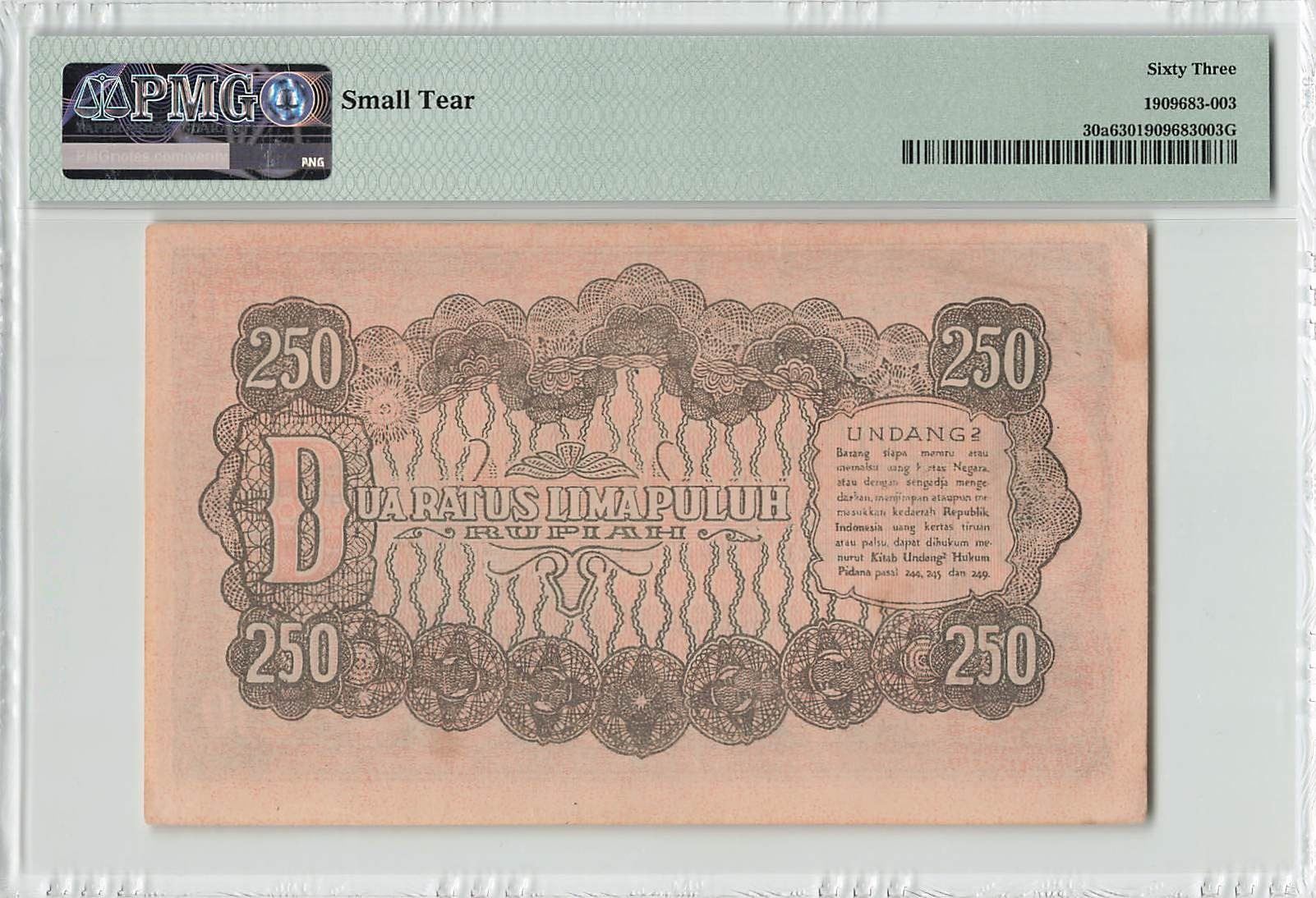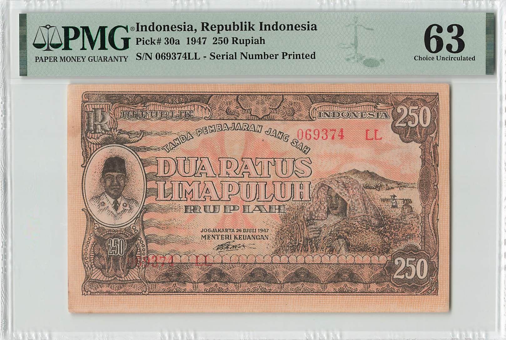 Indonesia 250 Rupiah 1947 Pick 30a PMG Choice Uncirculated 63