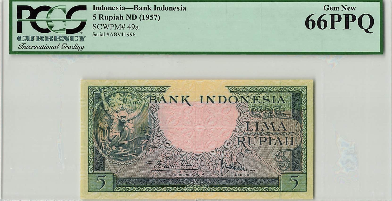 Indonesia 5 Rupiah 1957 Pick 49a PCGS Gem New UNC 66 PPQ
