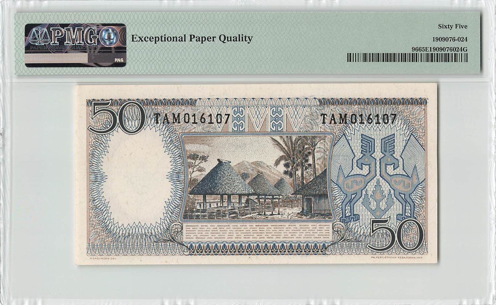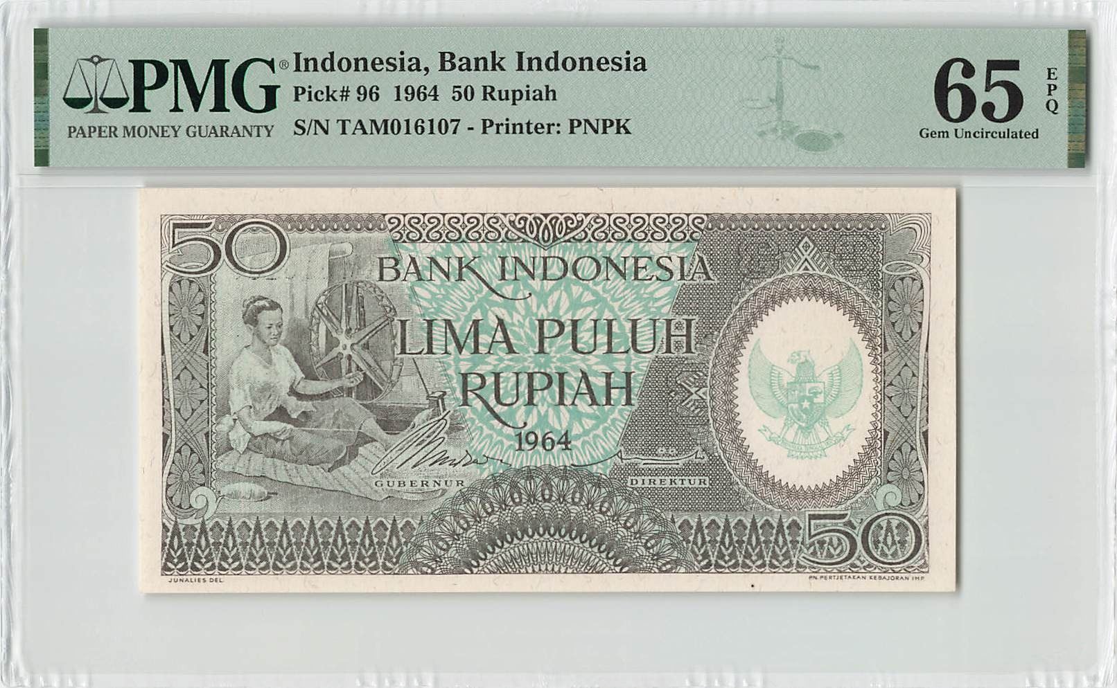 Indonesia 50 Rupiah 1964 Pick 96 PMG Gem Uncirculated 65 EPQ