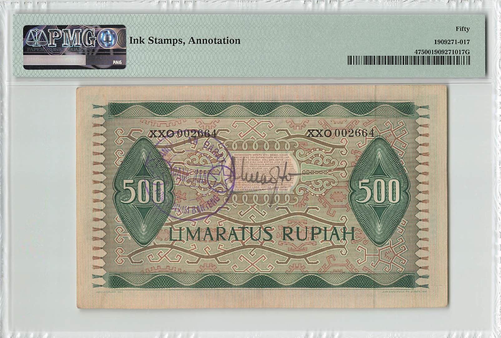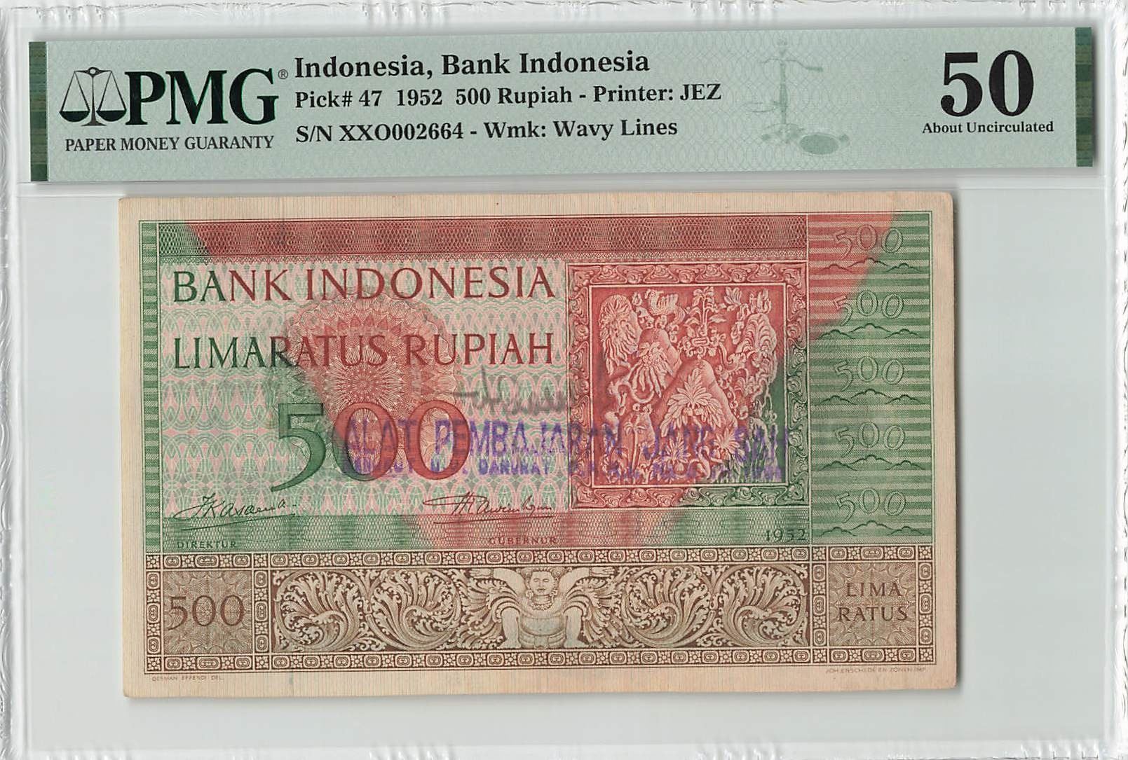 Indonesia 500 Rupiah 1952 JEZ Pick 47 PMG About Uncirculated 50