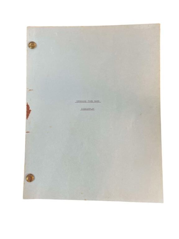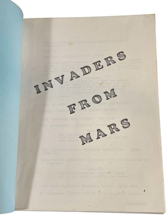 Original script used on the Tobe Hooper directed science fiction horror film 'Invaders from Mars' (1986), where a boy tries to stop aliens who have taken over his town and are attempting to brainwash its inhabitant.
