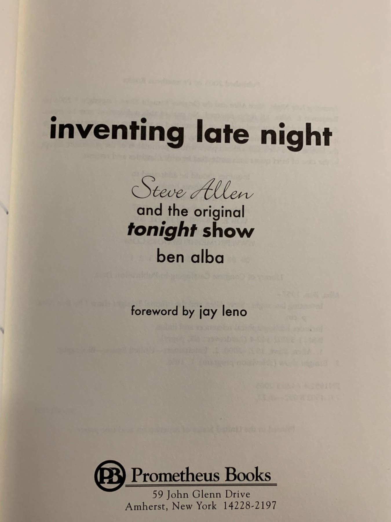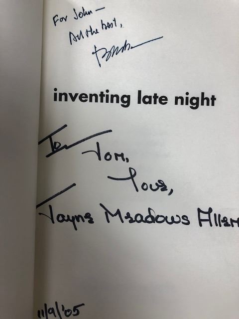 Inventing Late Night: Steve Allen and the Original Tonight Show signed book autographed by author Ben Alba and Jayne Meadows Allen