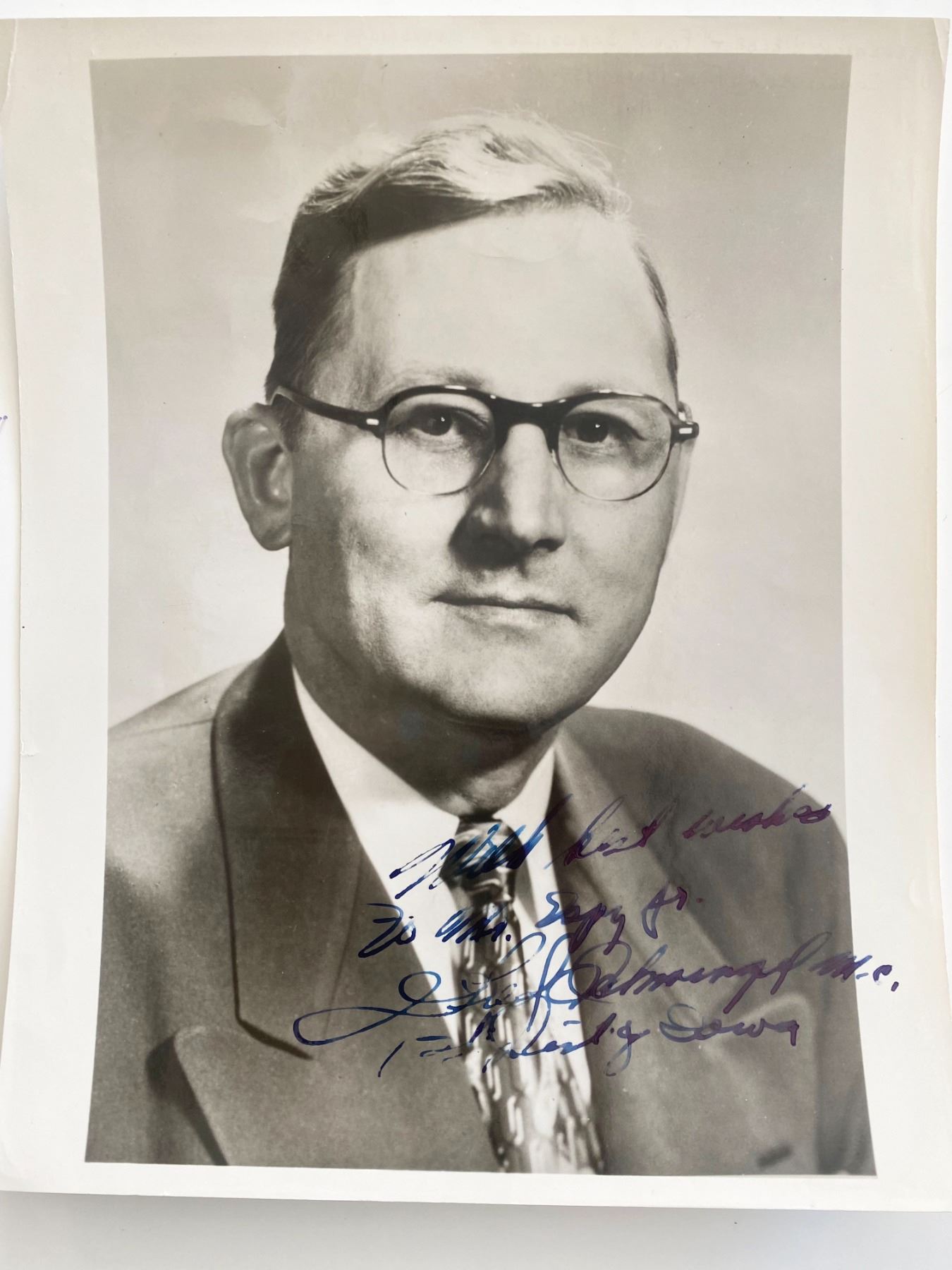 Iowa Congressman Fred Schwengel signed photo. 8 x 10 inches