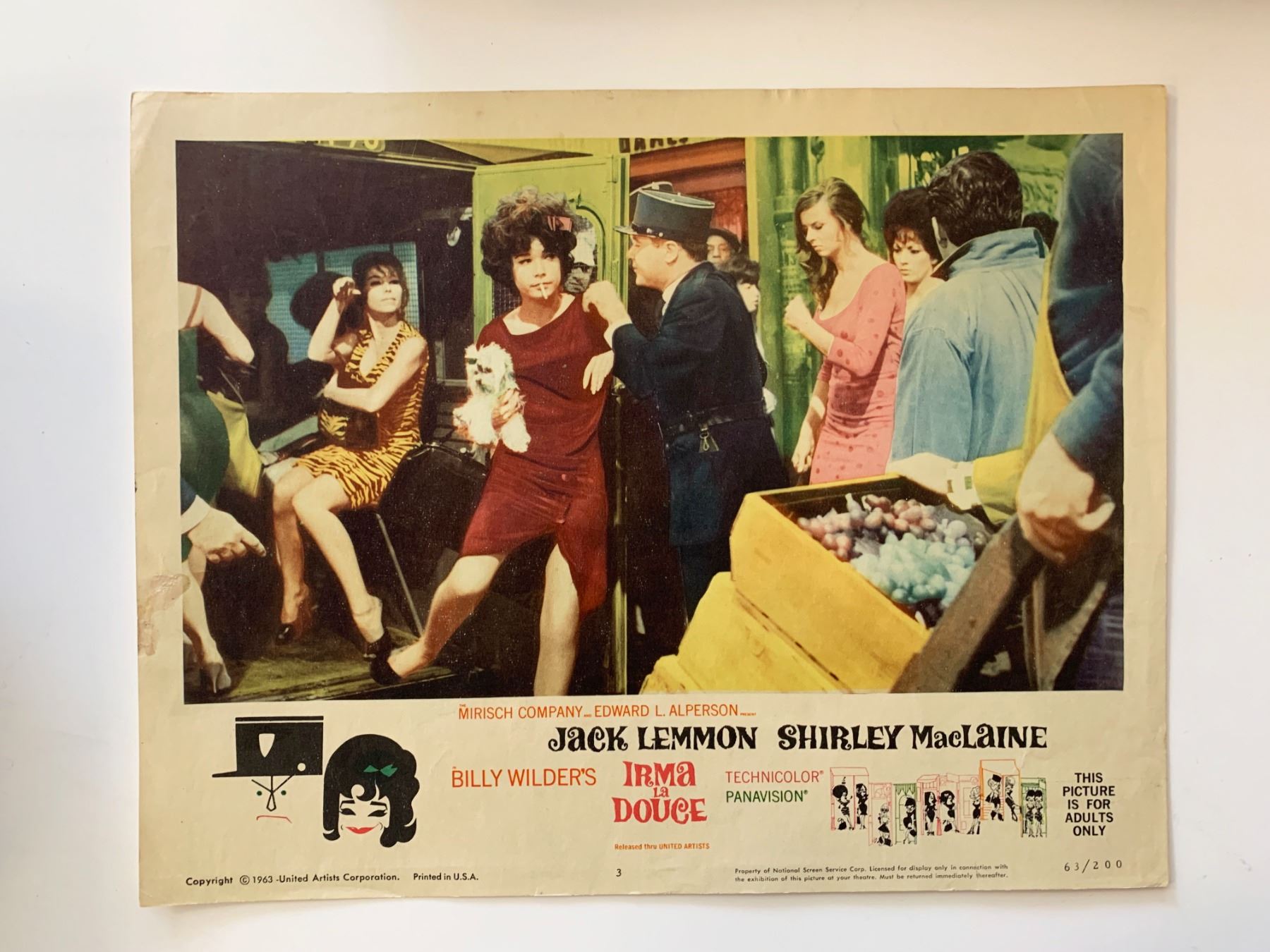 Irma la Douce original 1963 vintage lobby card on heavy card stock. 11x14 inches