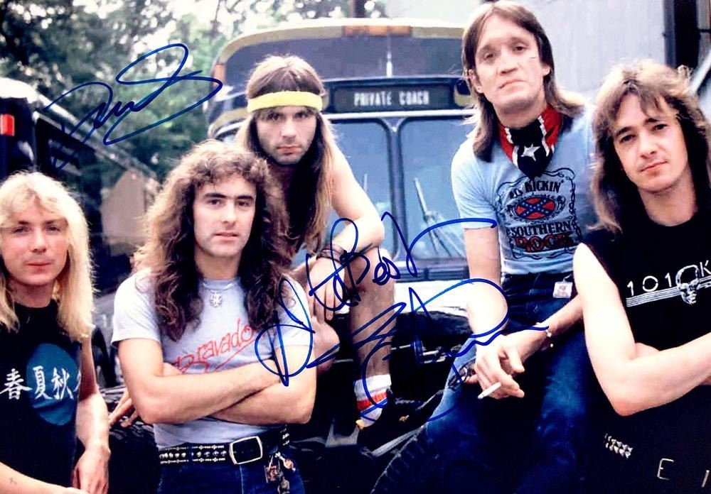 Iron Maiden facsimile facsimile signed photo autographed by Dave Murray and Steve Harris. 8x10 inches. This item is a reprint of an original autograph