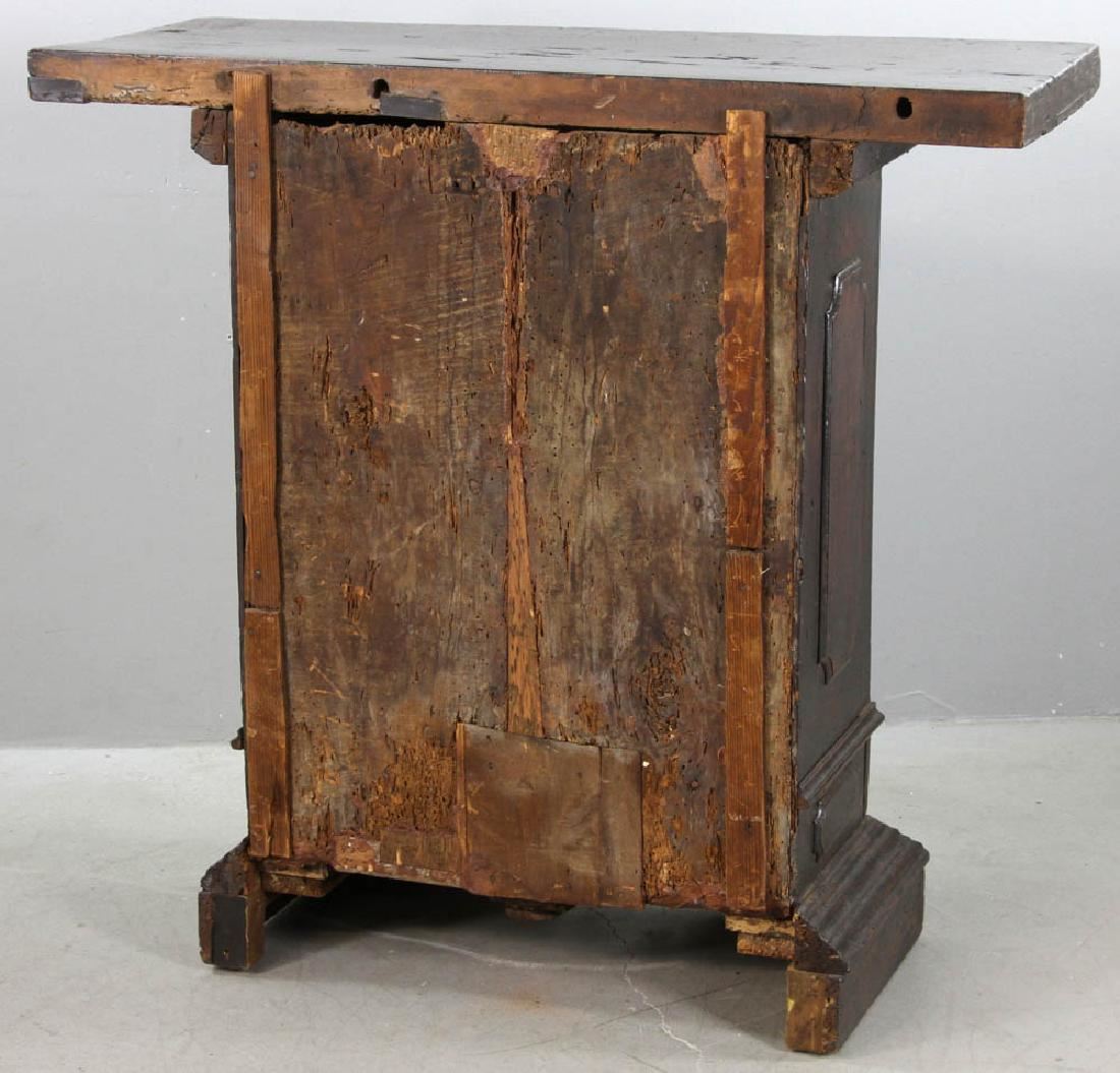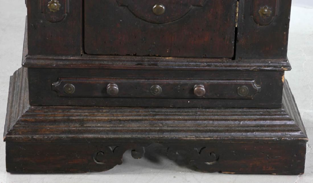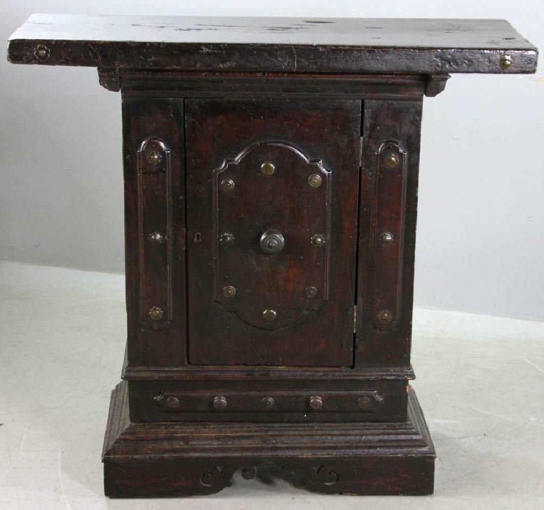 Italian Renaissance walnut cabinet, one door over one drawer, circa 1600, 41" H x 43" W x 16" D. Provenance: New York estate.
