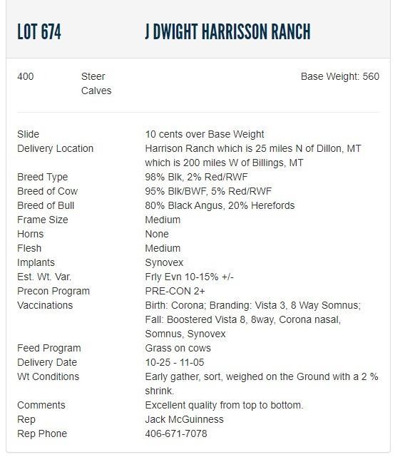 J Dwight Harrisson Ranch - 400 Steers; Base Weight: 560