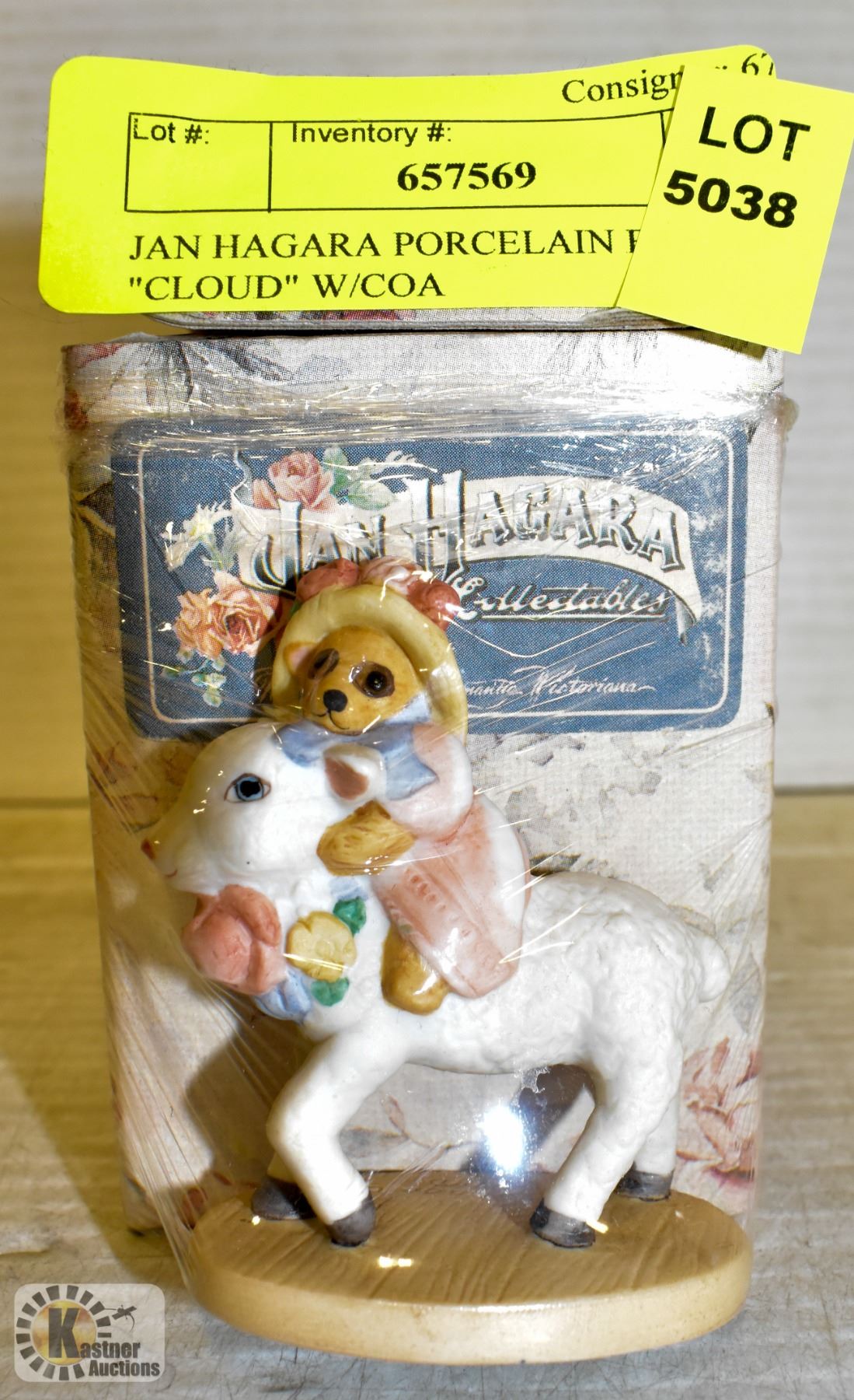 JAN HAGARA C22315 - TEDDY BEAR RIDING LAMB - NEW IN BOX W/COA