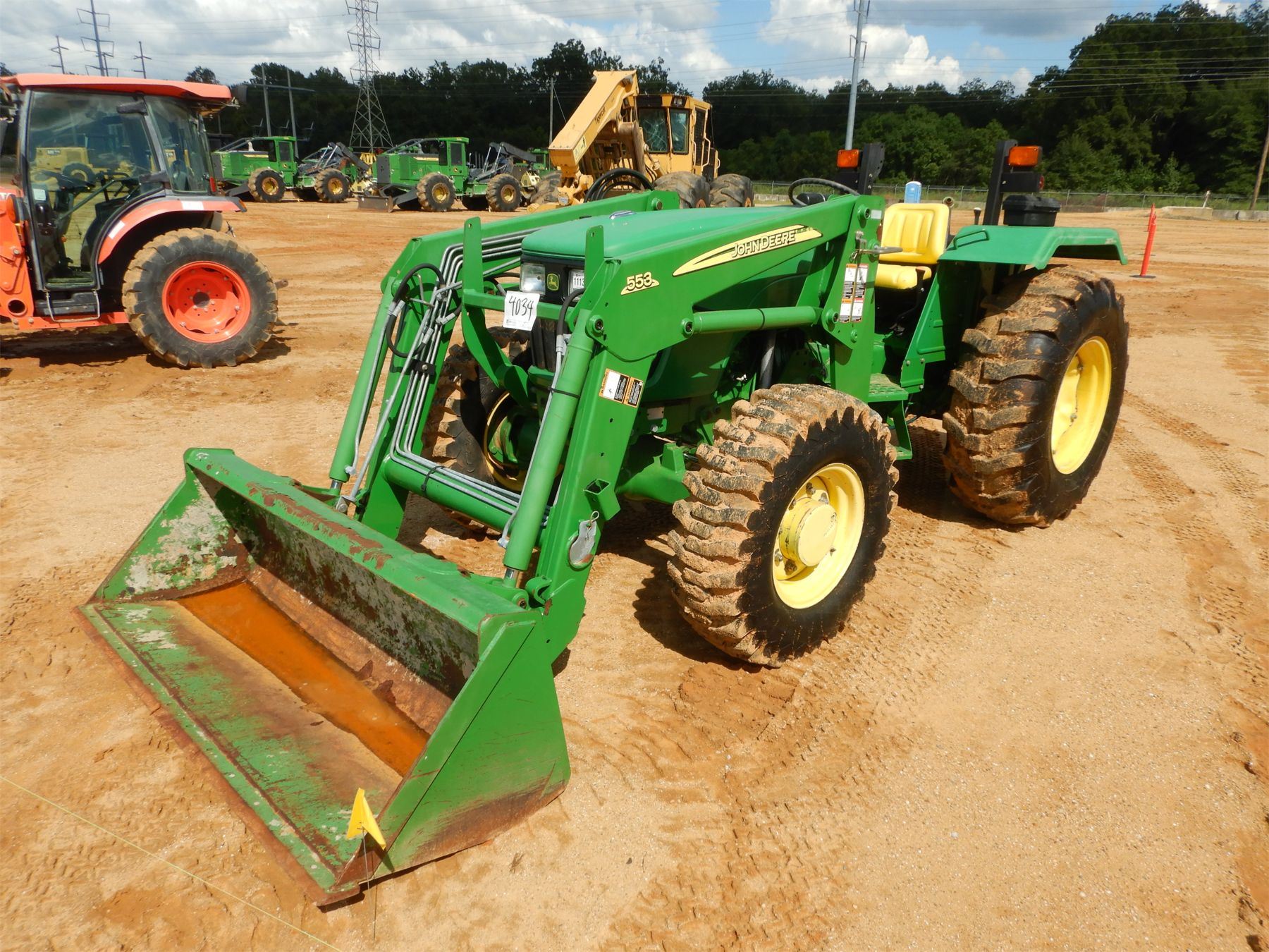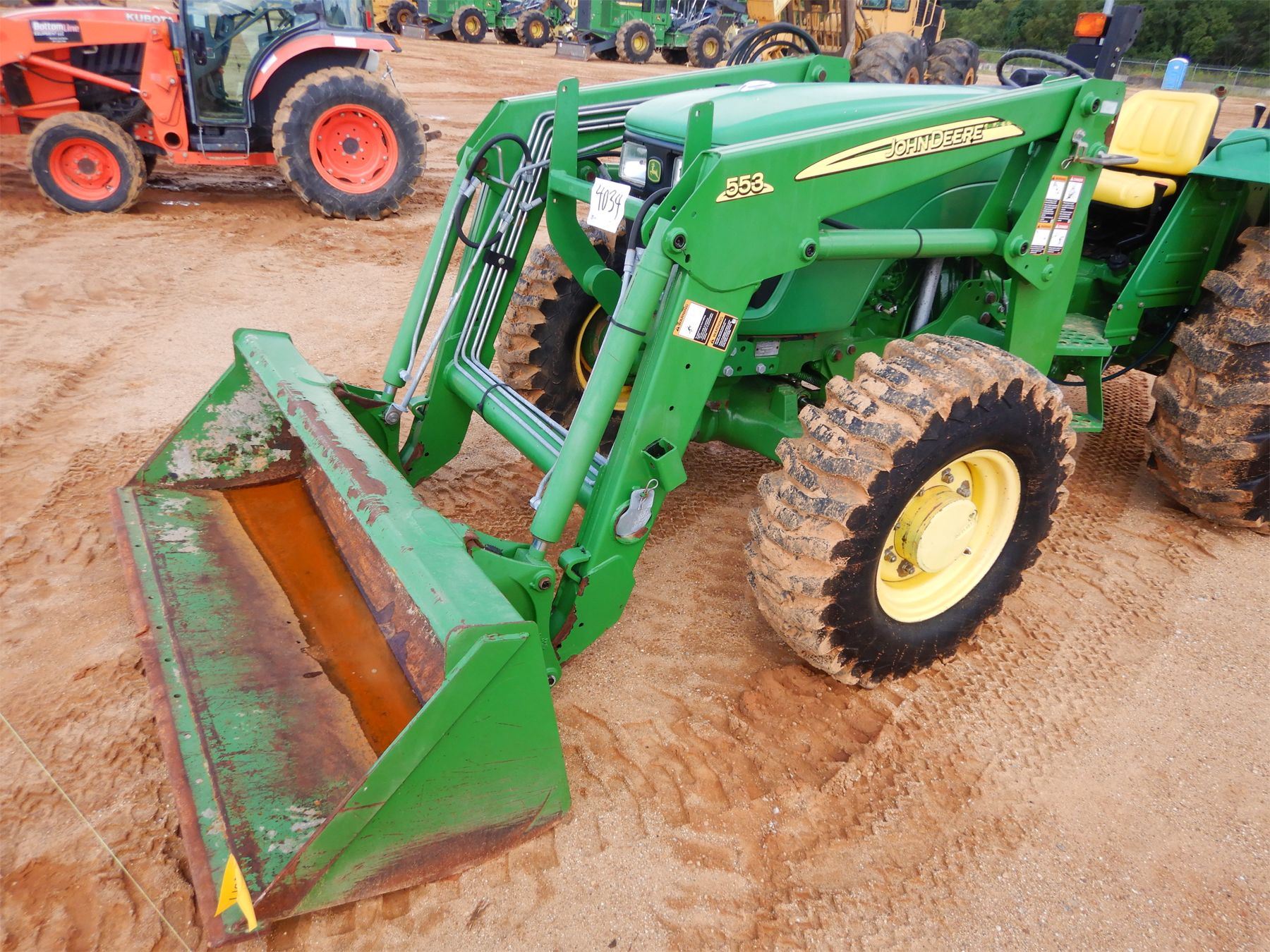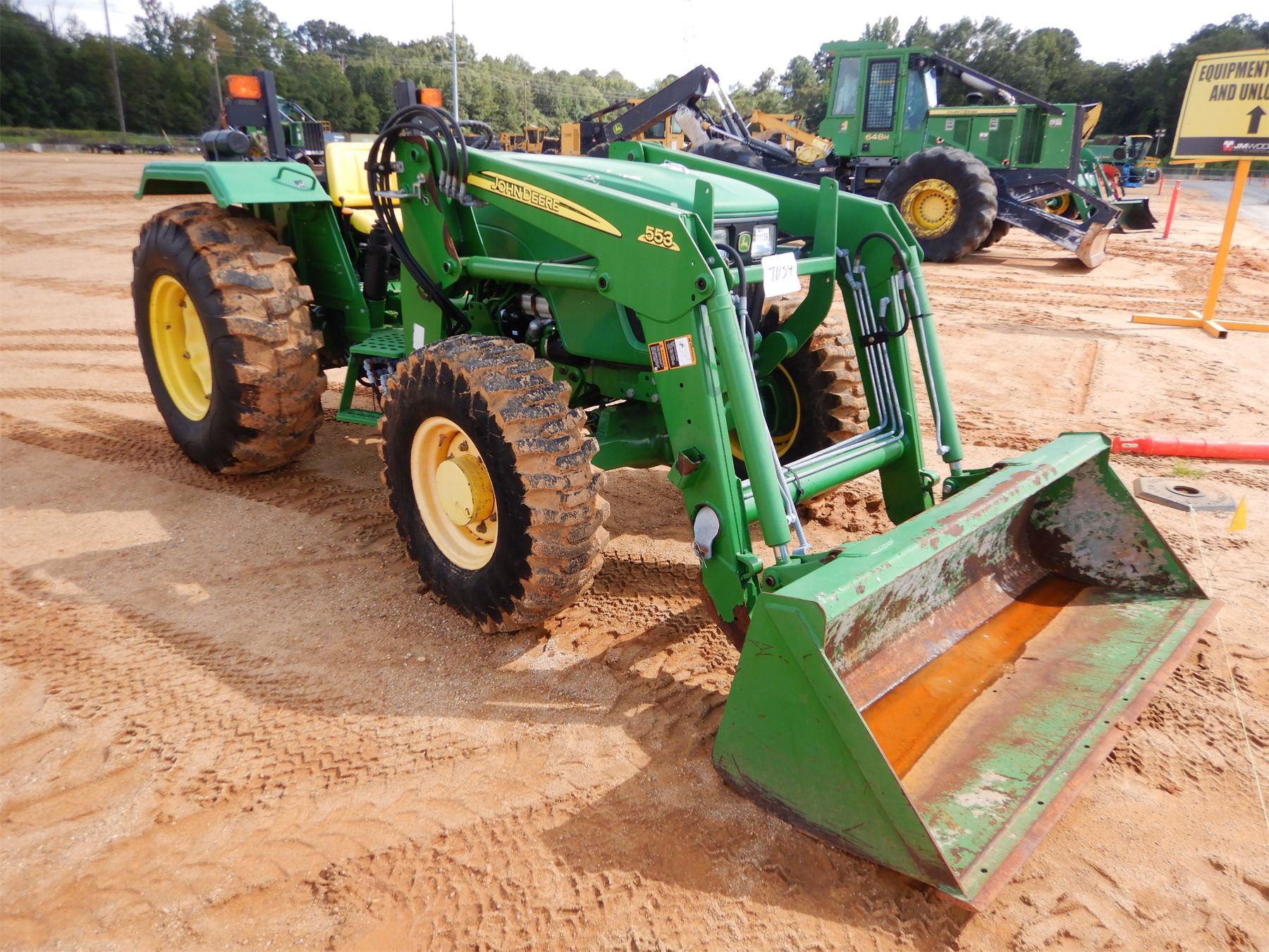 MFWD, (1) remote, John Deere 553 front loader attach, bucket
