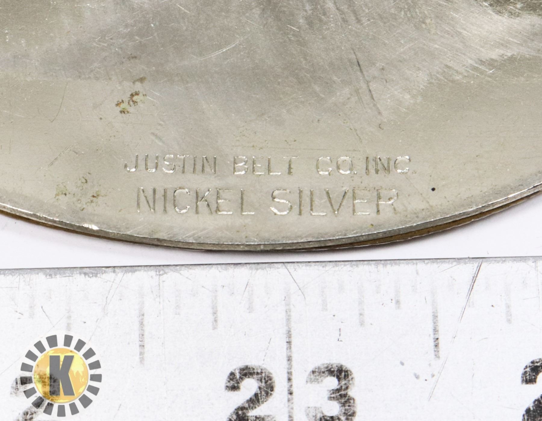 JUSTIN BELT CO INC NICKEL SILVER BELT BUCKLE