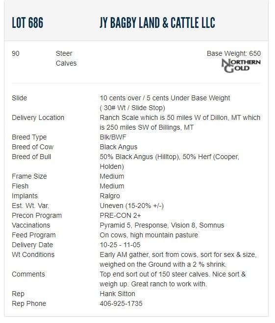 JY Bagby Land & Cattle LLC - 90 Steers; Base Weight: 650