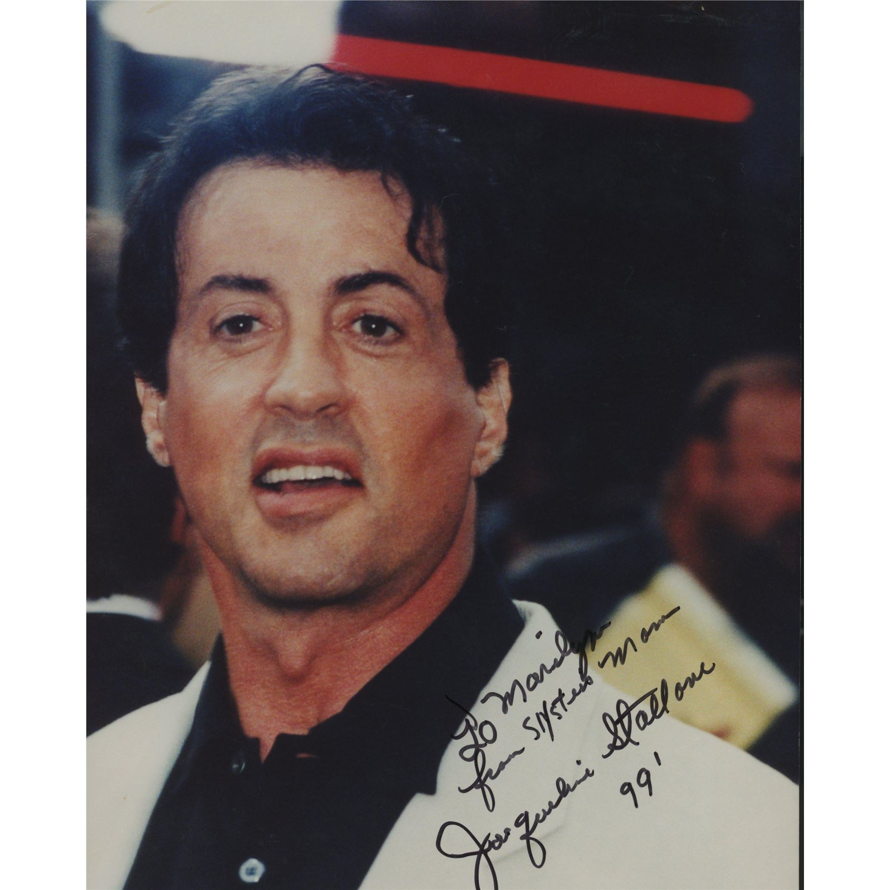 Jacqueline Stallone signed photo. 8 x 10 inches She signed her sons picture.