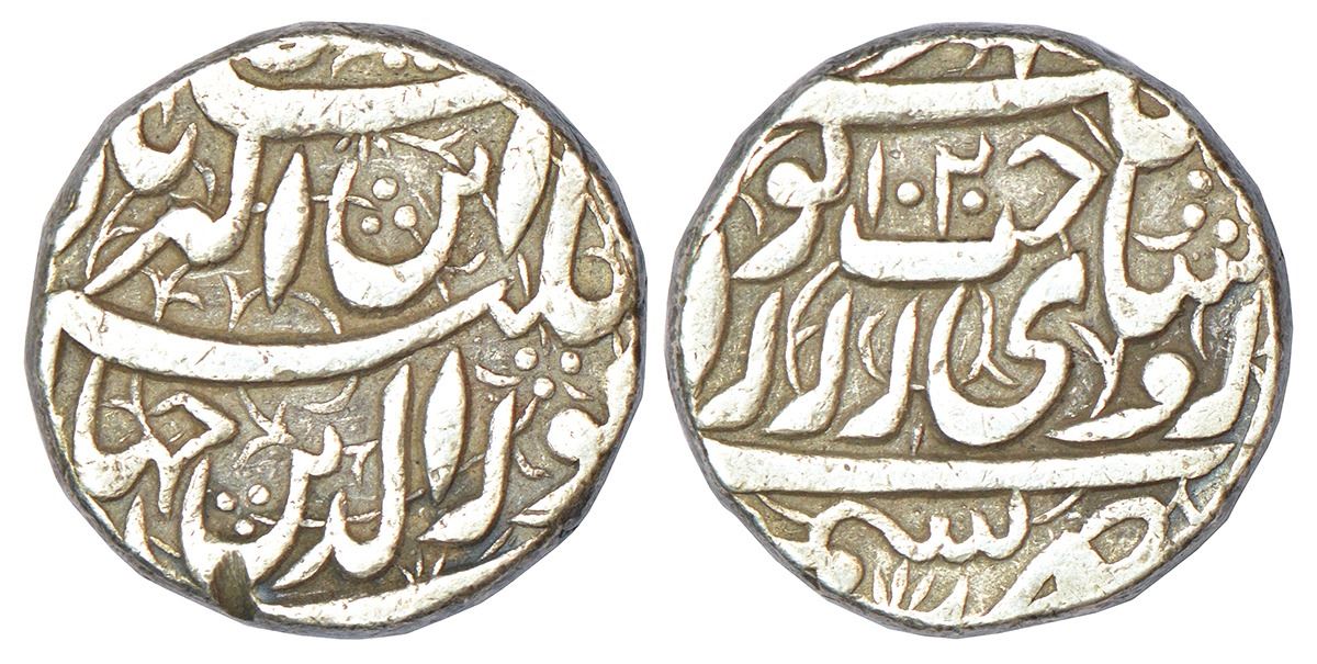 Jahangir (1605-1627 AD), silver heavy rupee (20% heavy weight), Kashmir mint, 'Sakhat Noorani' couplet, AH 1020, KM 155.3, 13.54g.