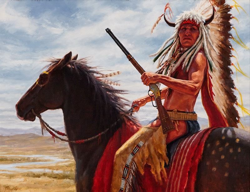 To the unaided eye, this piece appears to be in very good condition. Inspection under ultraviolet light reveals a normal fluorescence of the artist's pigments. There are no signs of damage or restoration. The piece is framed in a rustic wooden frame with a semi-ornate dark antiqued gold liner with molded details in the corners. The frame is in very good condition, showing normal signs of wear. Verso: [handwritten on back of panel] "Display of Eminence" Lakota, James Ayers