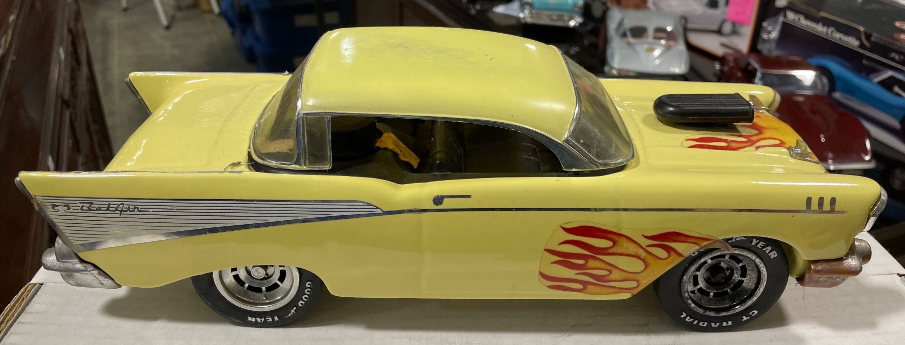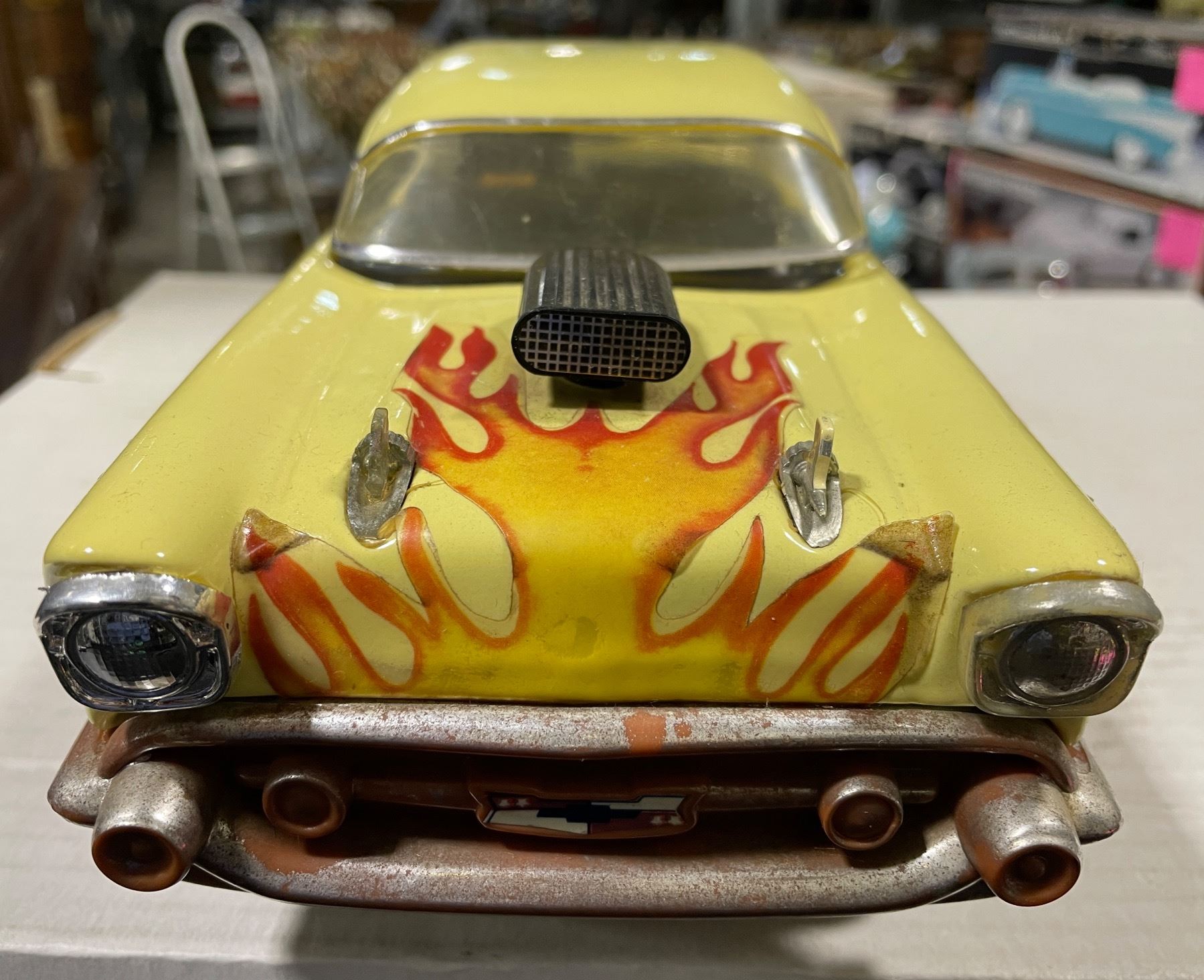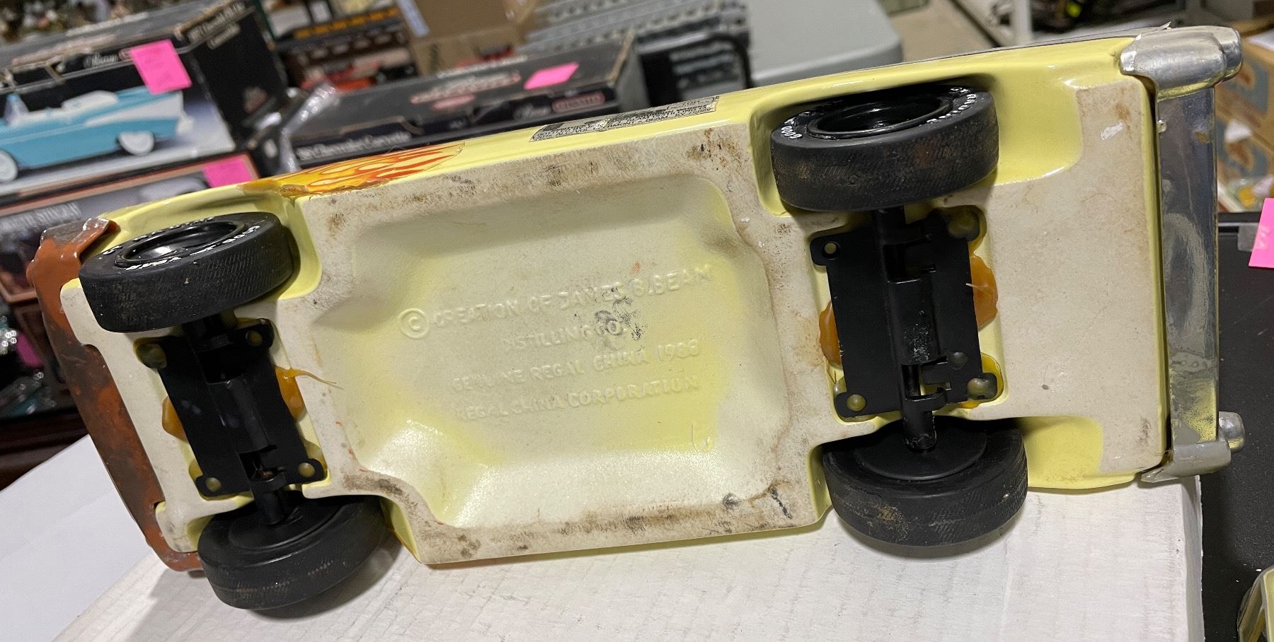 James Beam 1957 Hot Rod China Decanter - Yellow with Flames - No Box - Full