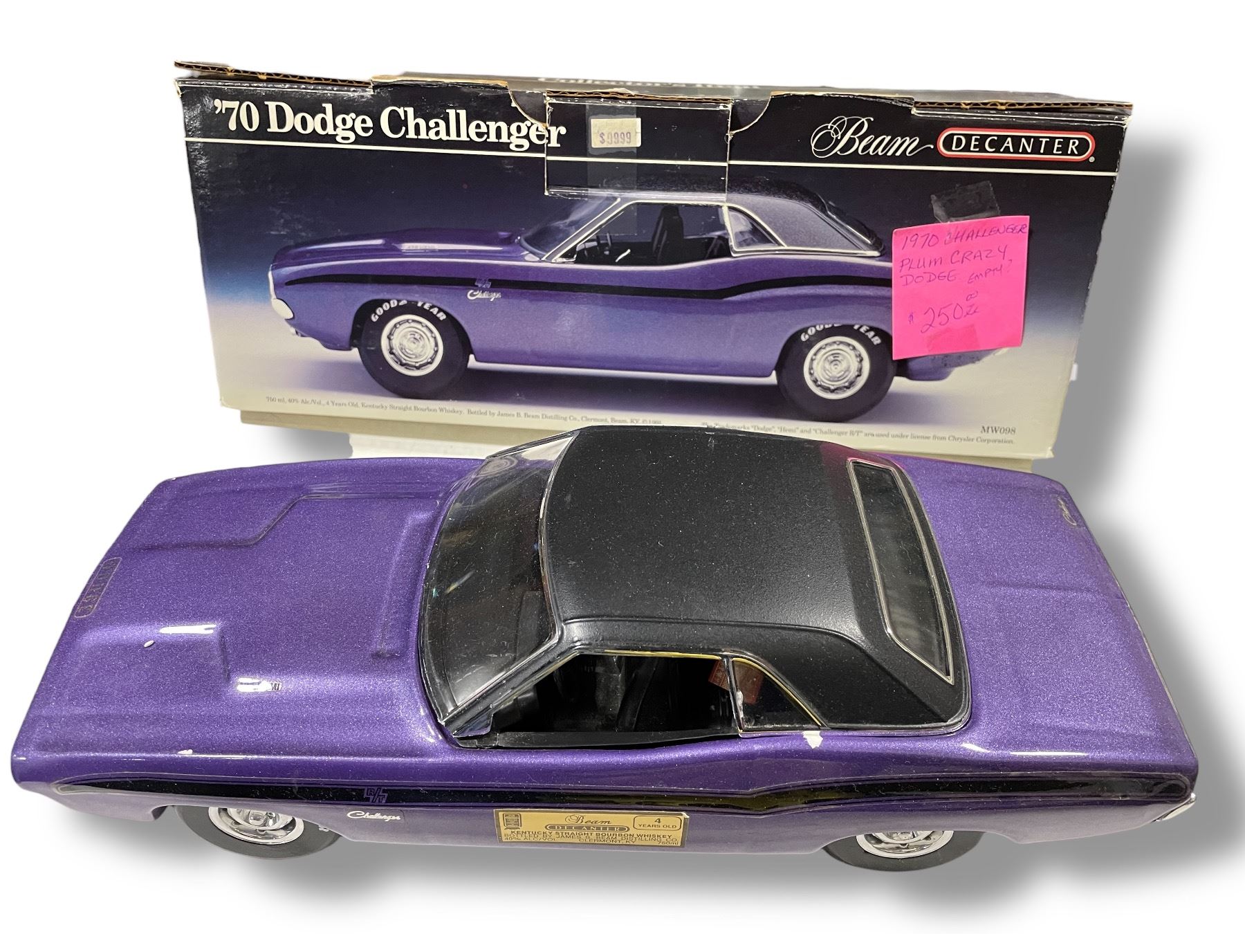 James Beam 1970 "Plum Crazy" Dodge Challenger China Decanter with Box - Empty