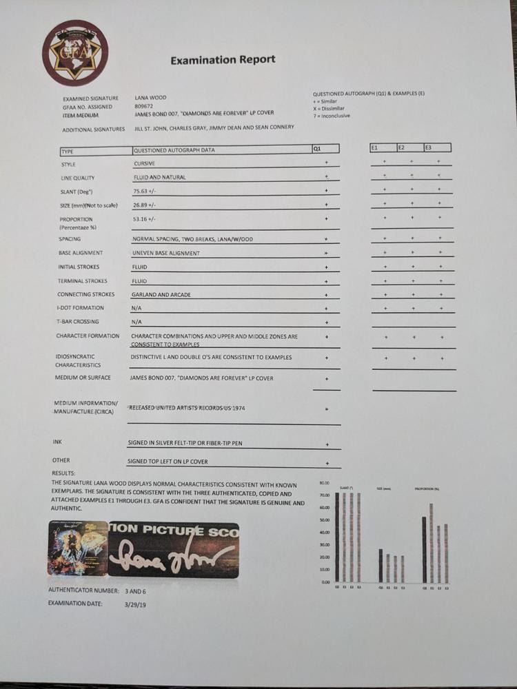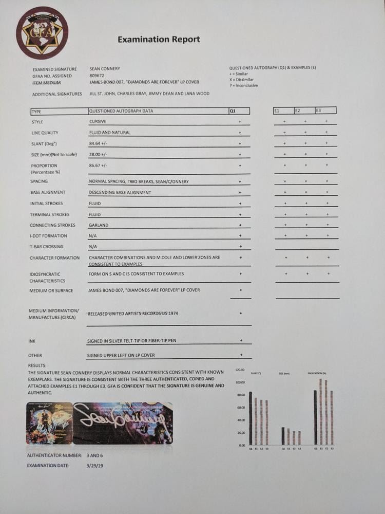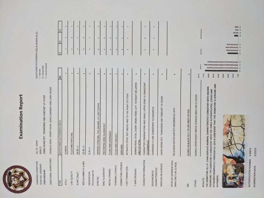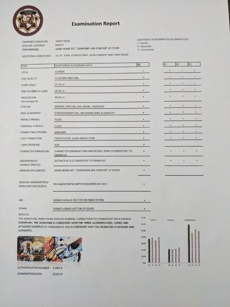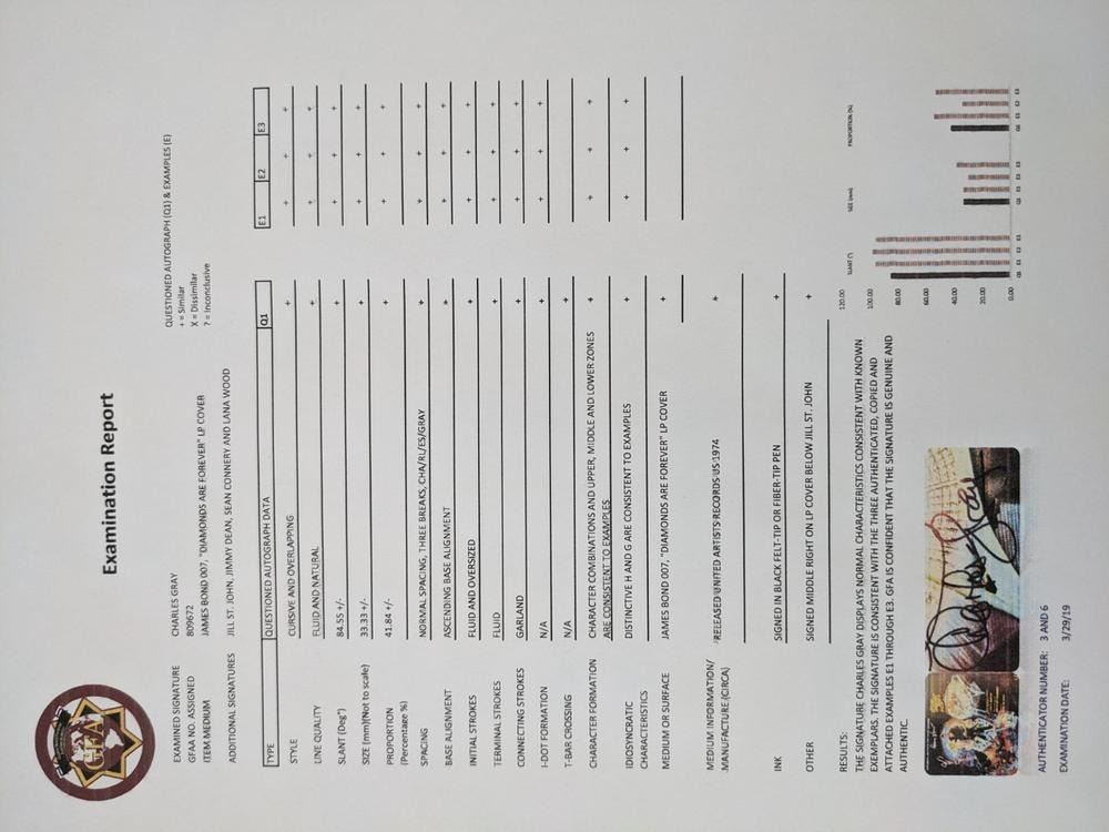 James Bond 007, Diamonds Are Forever Soundtrack LP. Signed by Sean Connery, Charles Gray, Lana Wood, Jill St. John, and Jimmy Dean. 12x12 inches, vinyl Included. GFA Authenticated