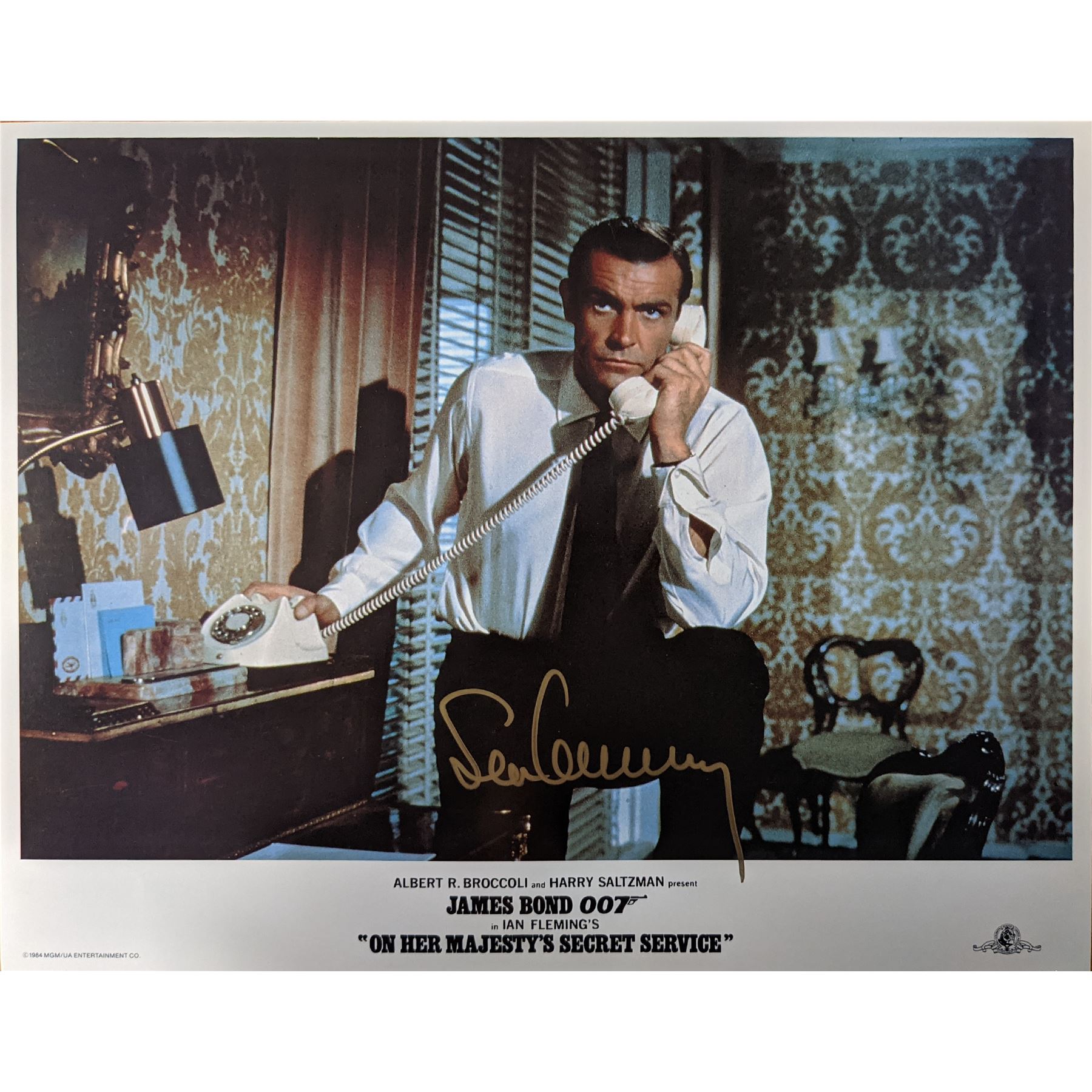 James Bond On Her Majesty's Secret Service signed original 1984 vintage lobby card on heavy card stock autographed by Sean Connery. 11x14 inches