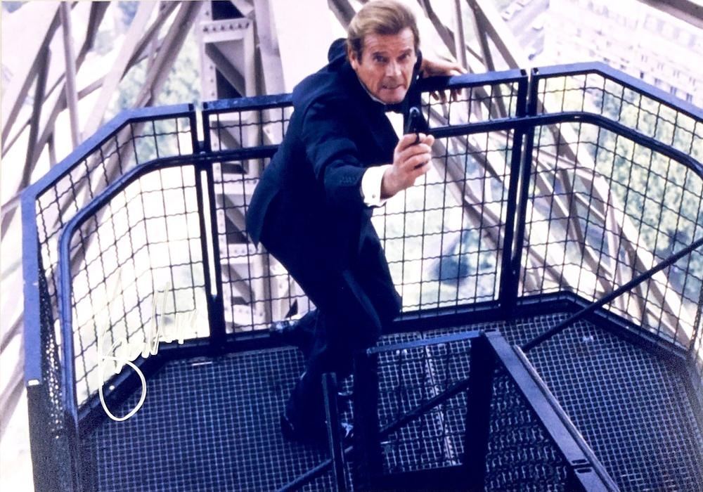 James Bond Roger Moore facsimile signed movie photo. 8x10 inches. This item is a reprint of an original autograph