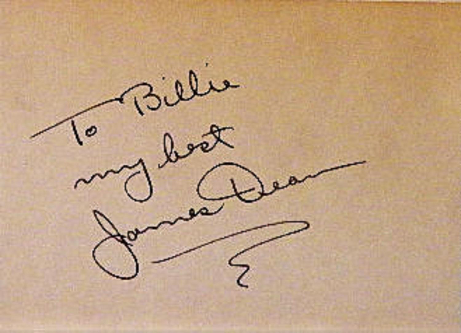 James Dean 5 in. by 3 1/2 in. signature slip signed To Billie My Best James Dean