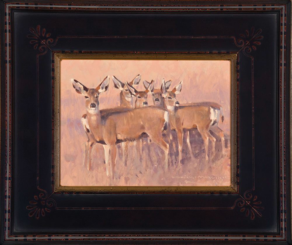 Artist: James Morgan; Title: On alert; Medium: Oil on board; Dimensions: 9 x 12 inches; Signed: Signed lower right; Verso: Signed and dated verso; Framed/Base: 17 x 20 inches