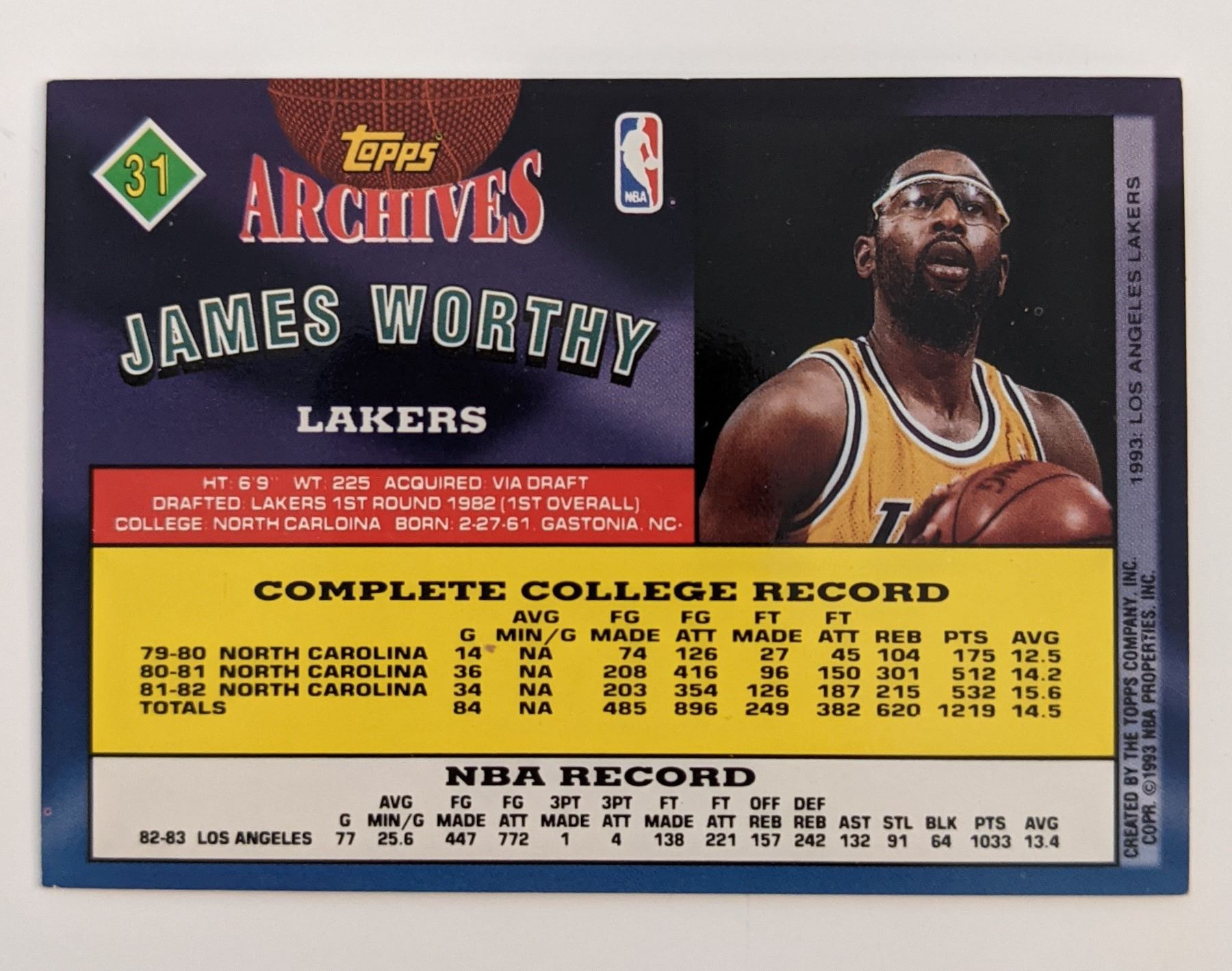 James Worthy Lakers Facsimile Signed Topps Basketball Card 1993 - Archives #31