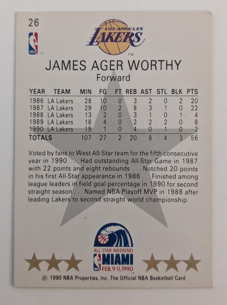 James Worthy Lakers NBA Hoops Basketball Card - All Star Weekend Miami Feb 9-11 1990