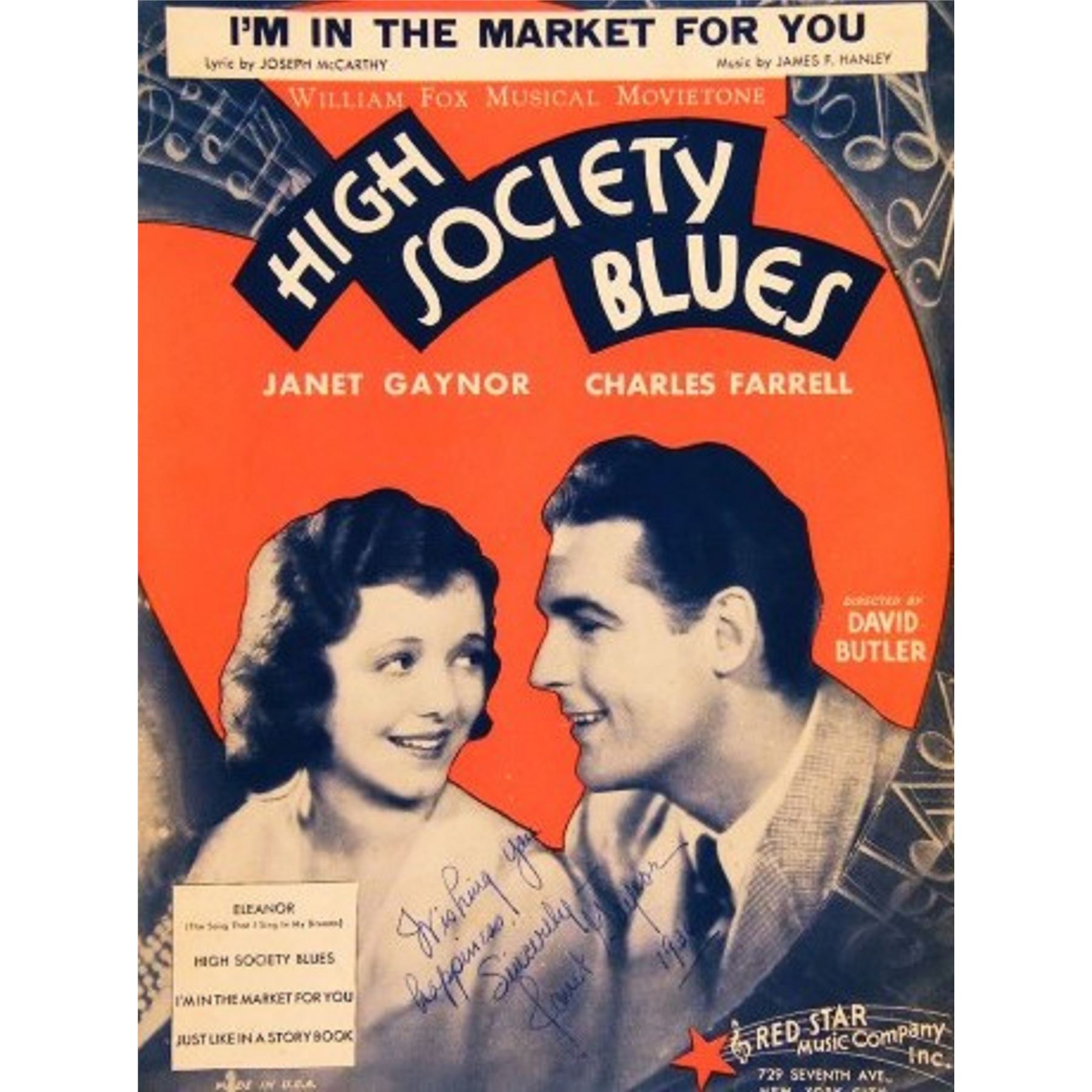 I'm In The Market For You - 1930 sheet music from "High Society Blues" autographed by Marvin Gaye as Wishing You Happiness. Sincerely Janet Gaynor 1936.