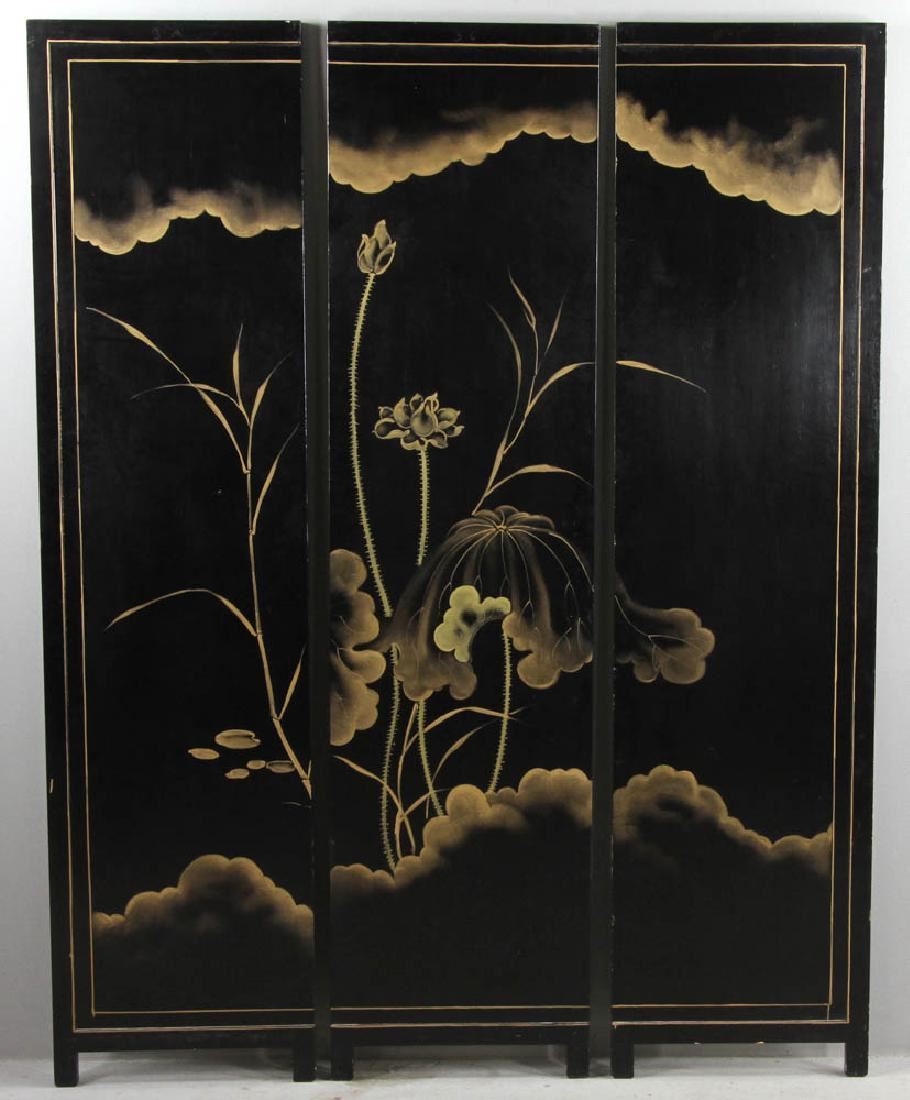 Japanese Three Panel Lacquered Screen