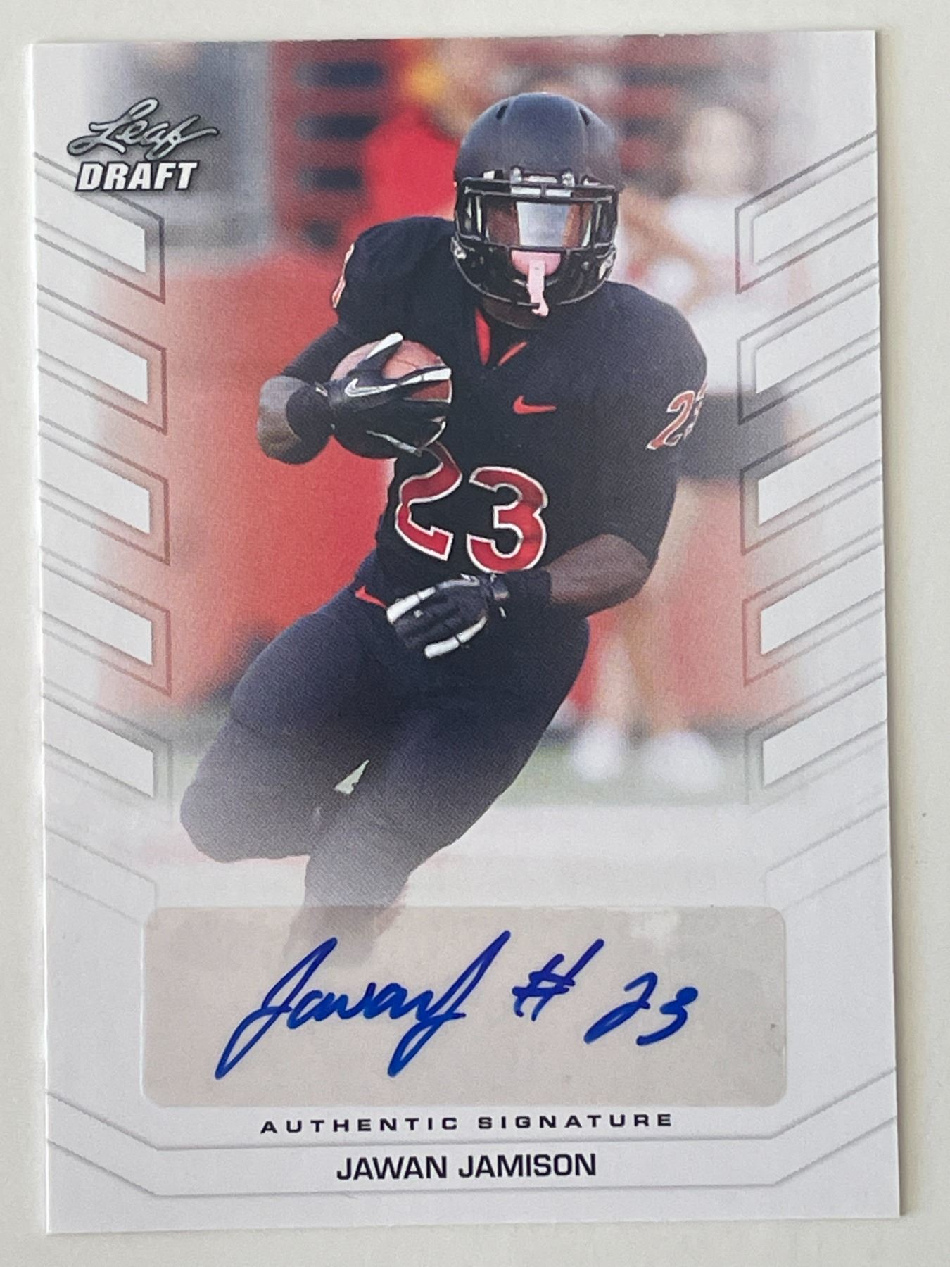 Jawan Jamison 2013 Leaf Draft signed trading card. 2x3 inches