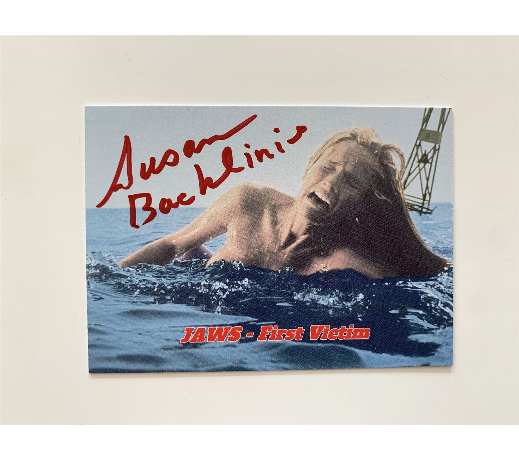 Jaws – First Victim, Susan Backlinie signed movie card. 3.5x2.5 inches