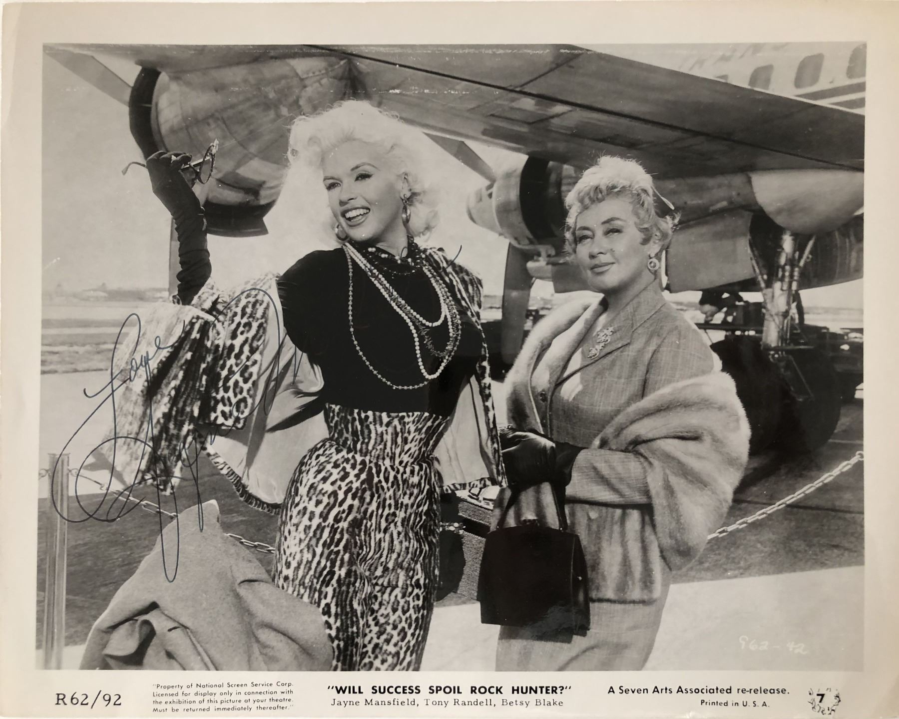 Will Success Spoil Rock Hunter? signed movie photo autographed by Jayne Mansfield. 8x10 in photo. GFA Authenticated