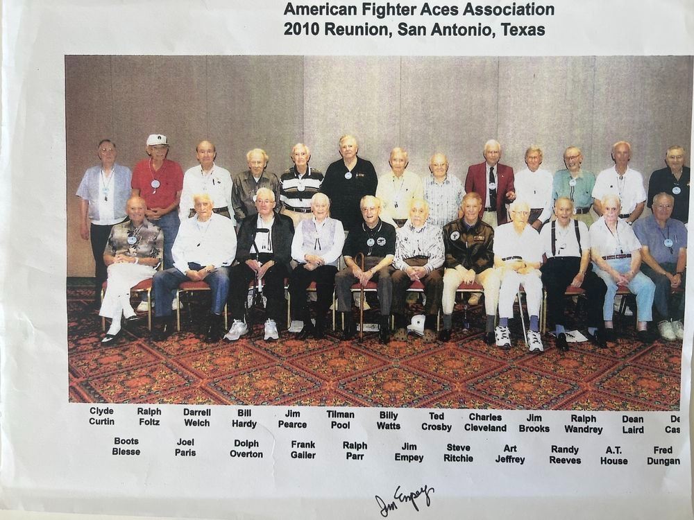 Jim Empey signed American Fighter Aces Association 2010 Reunion photo. 9x12 inches