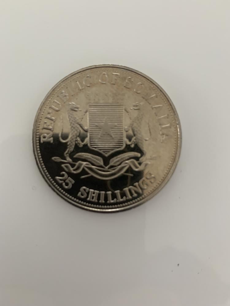 Jimi Hendrix Republic of Somalia 25 Shillings coin. Unsigned, 1.5 inches