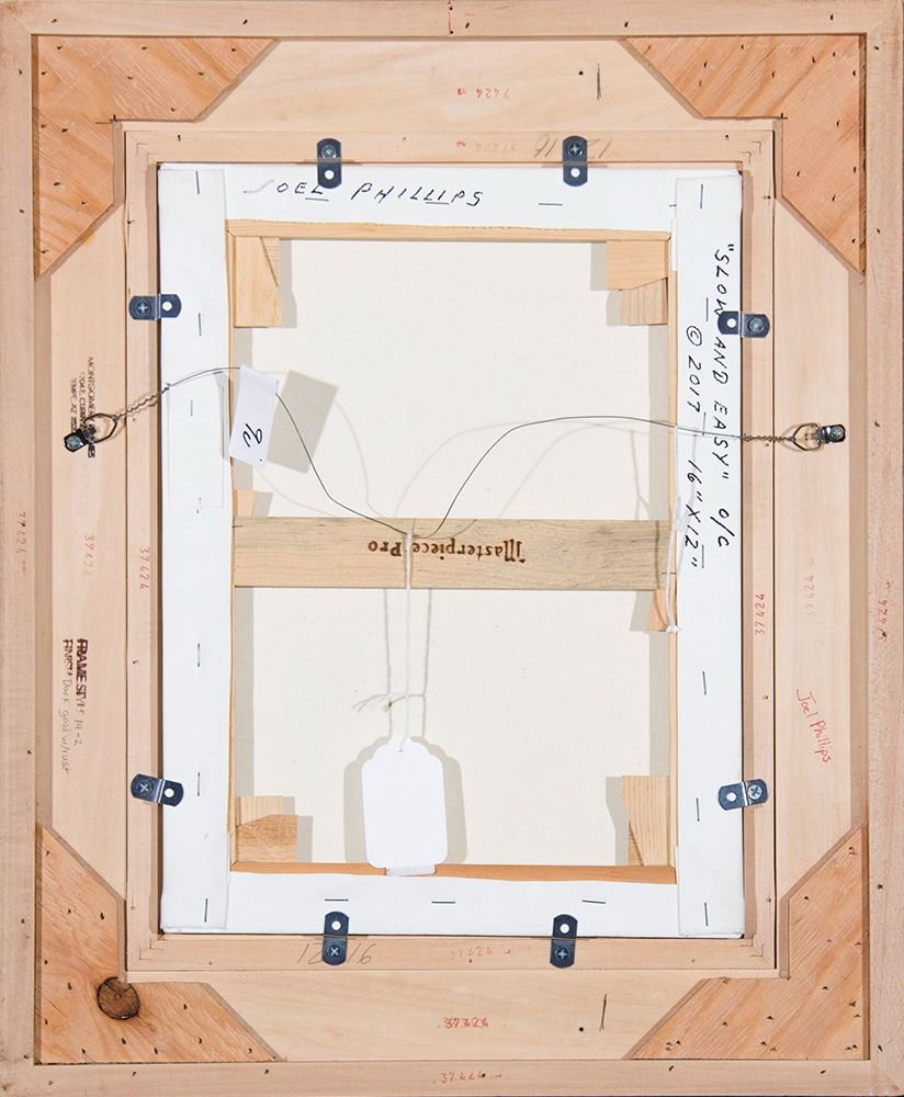 Artist: Joe Phillips; Title: Slow and Easy; Medium: Oil on canvas; Dimensions: 16 x 12 inches; Signed: Signed lower left; Verso: Signed, titled and dated 2017 verso; Framed/Base: 23 x 19 inches